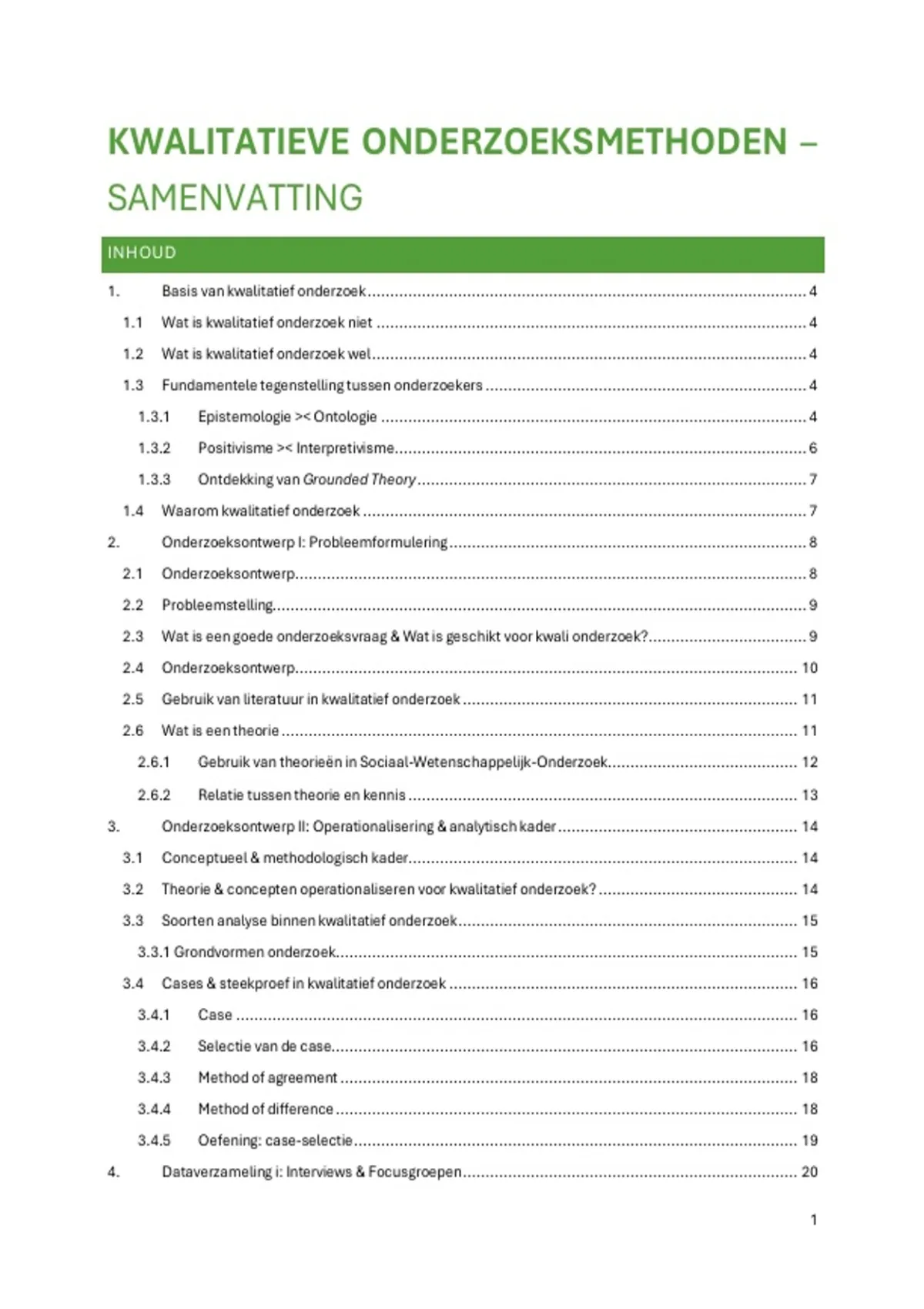 1.1 Wat is kwalitatief onderzoek niet ............................................................................................... 4