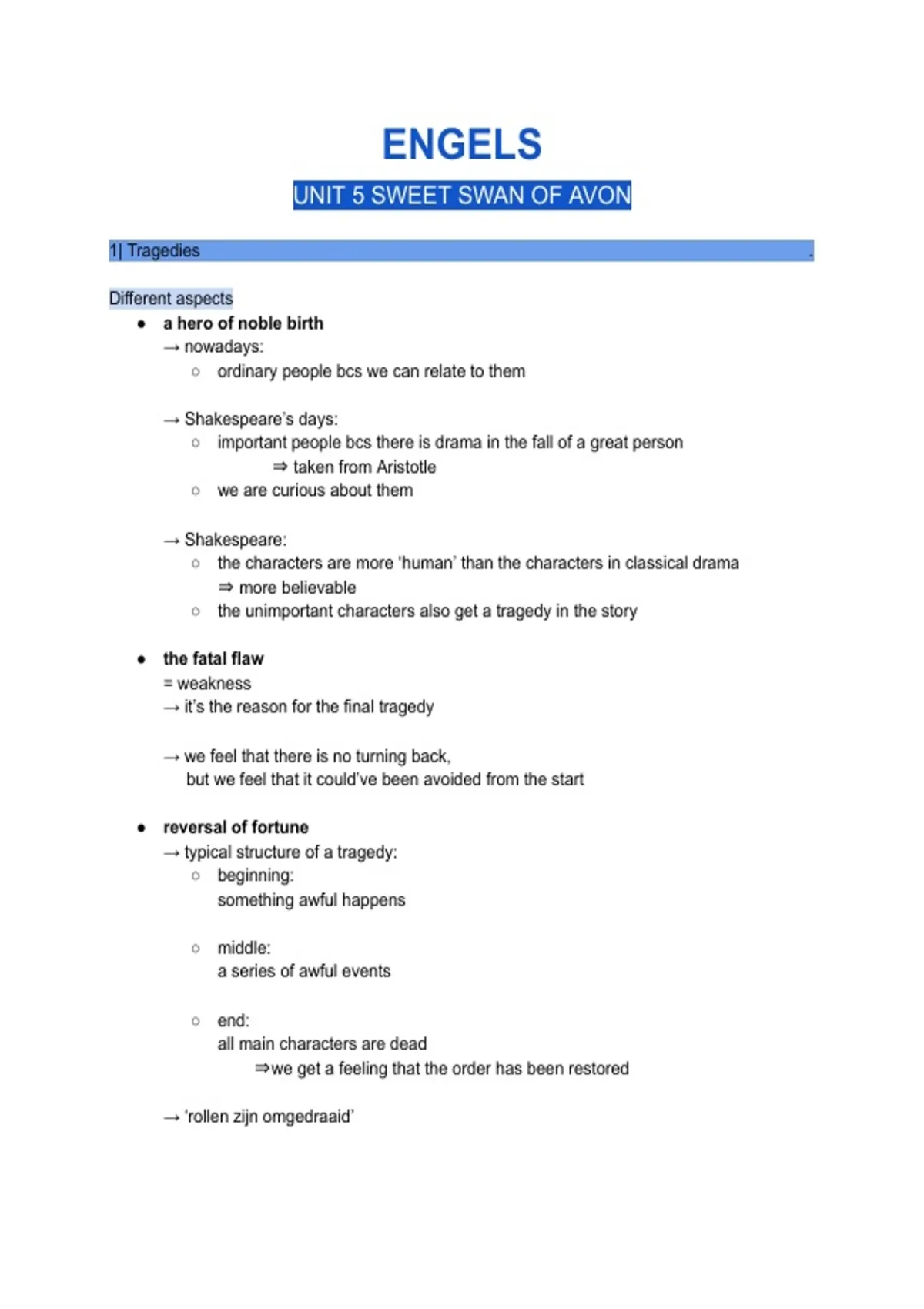Samenvatting - Engels Unit 5: Shakespeare