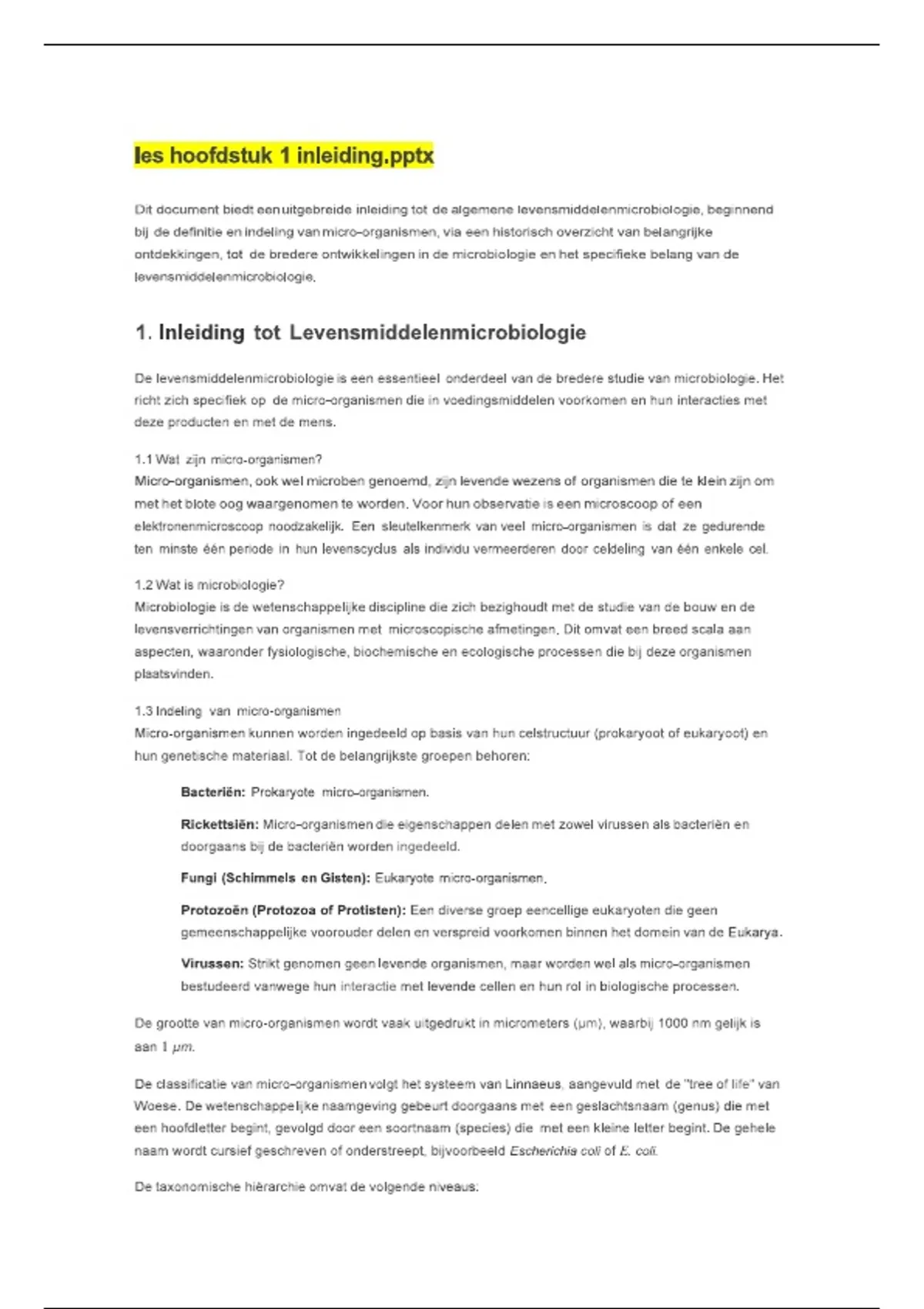 samenvatting van alle hoofdstukken die je in het vak microbiologie hebt gezien