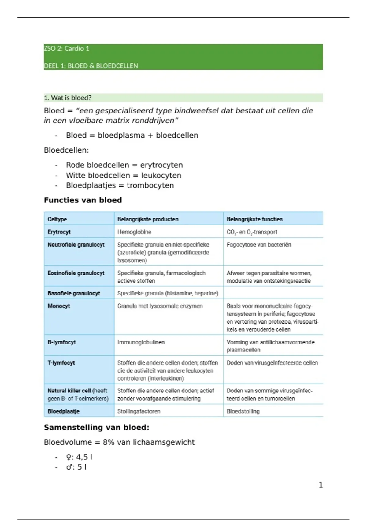 DEEL 1: BLOED & BLOEDCELLEN