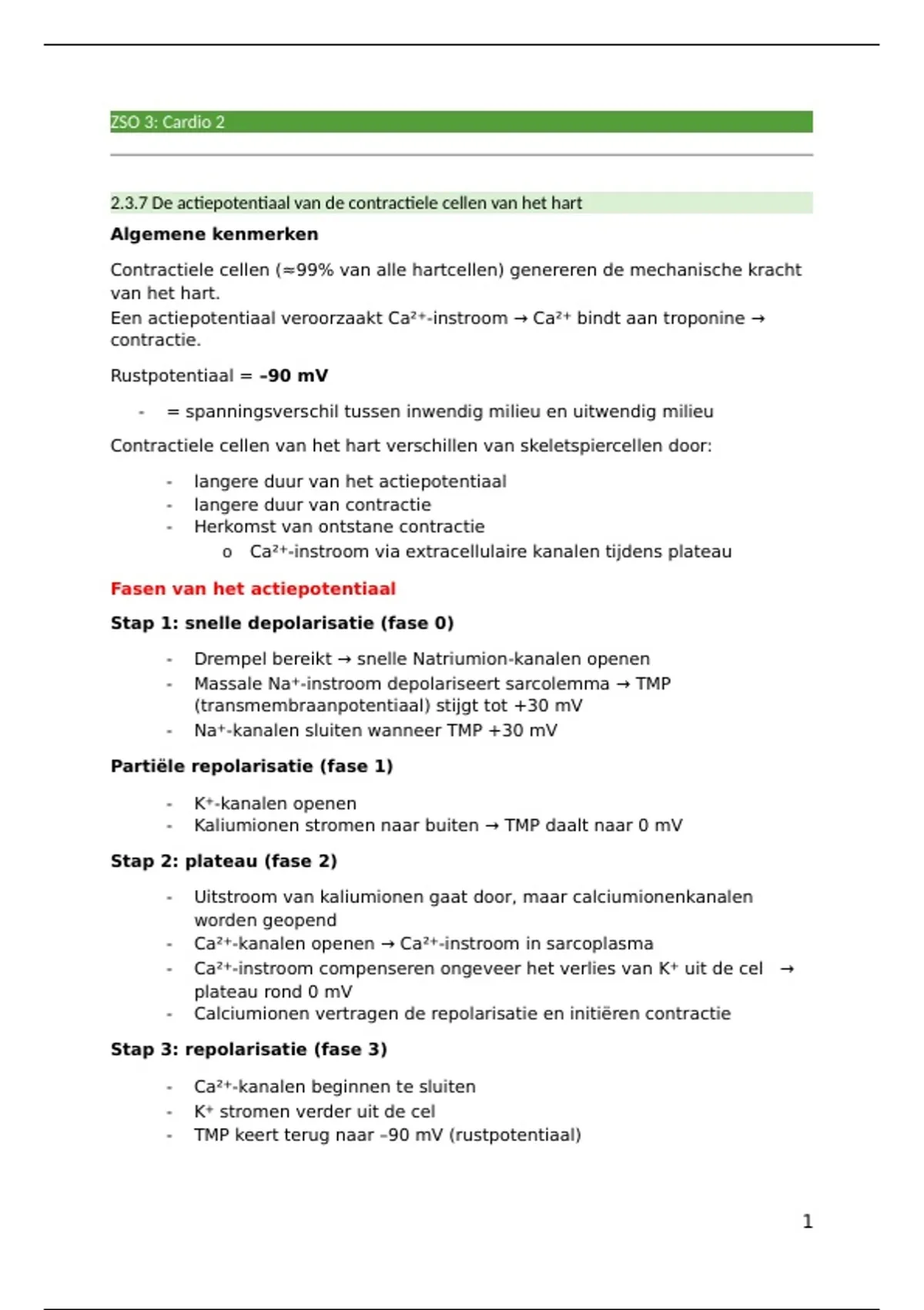 Samenvatting Cardio 2 | Basisprincipes Inwendige Systemen Deze samenvatting van Cardio 2 binnen het vak Basisprincipes Inwendige Systemen bevat alle belangrijke leerstof uit de cursus in een duidelijk en overzichtelijk document.