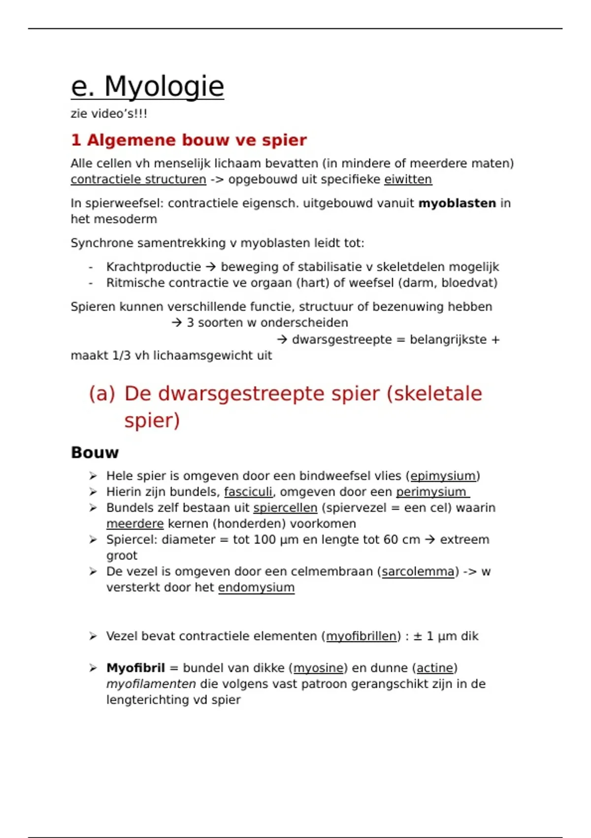 Samenvatting anatomie: Module 1 - e. myologie