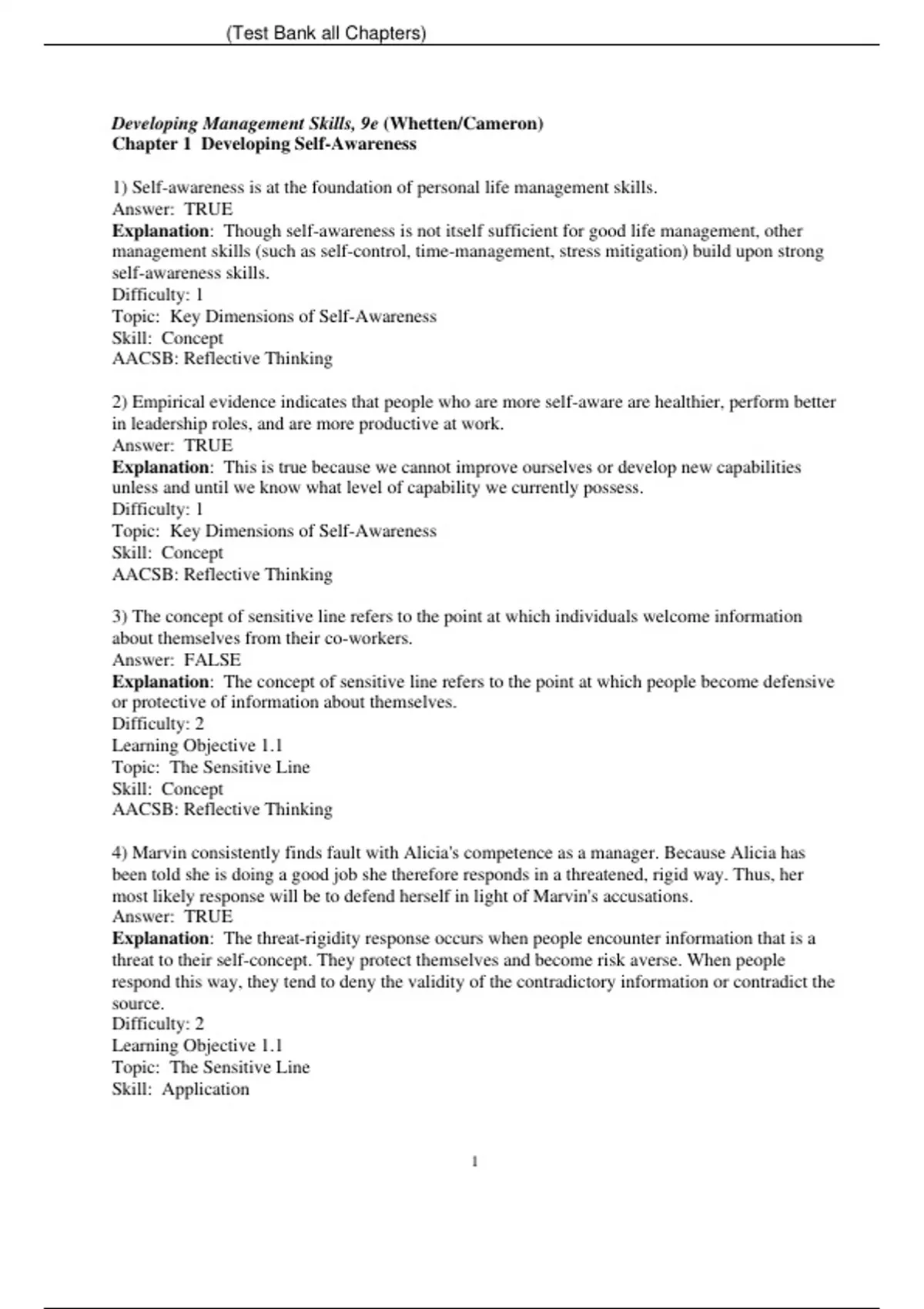 Developing Management Skills 9e Whetten Cameron (Test Bank)