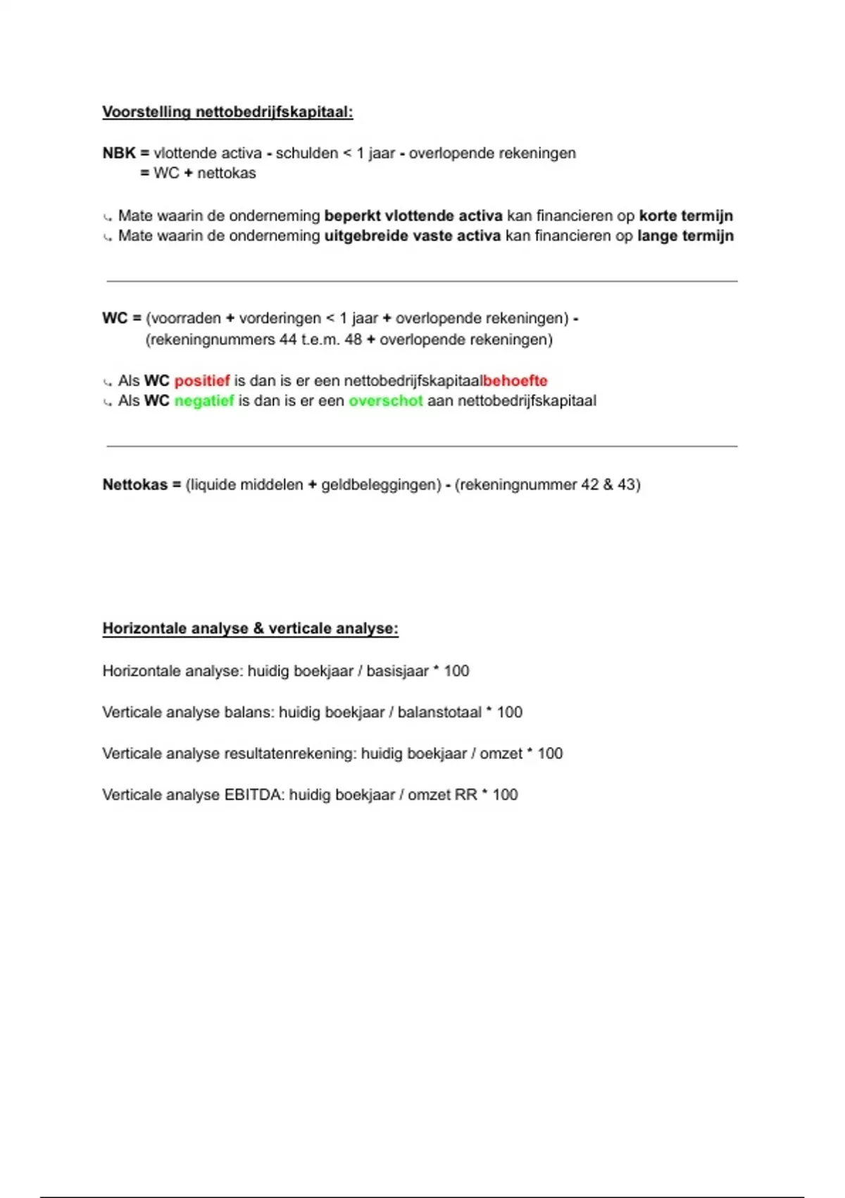 ⤷ Als WC positief is dan is er een nettobedrijfskapitaalbehoefte