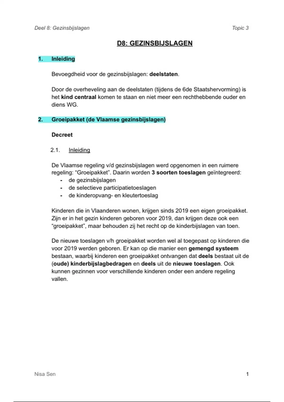 Deel 8: Gezinsbijslagen Topic 3