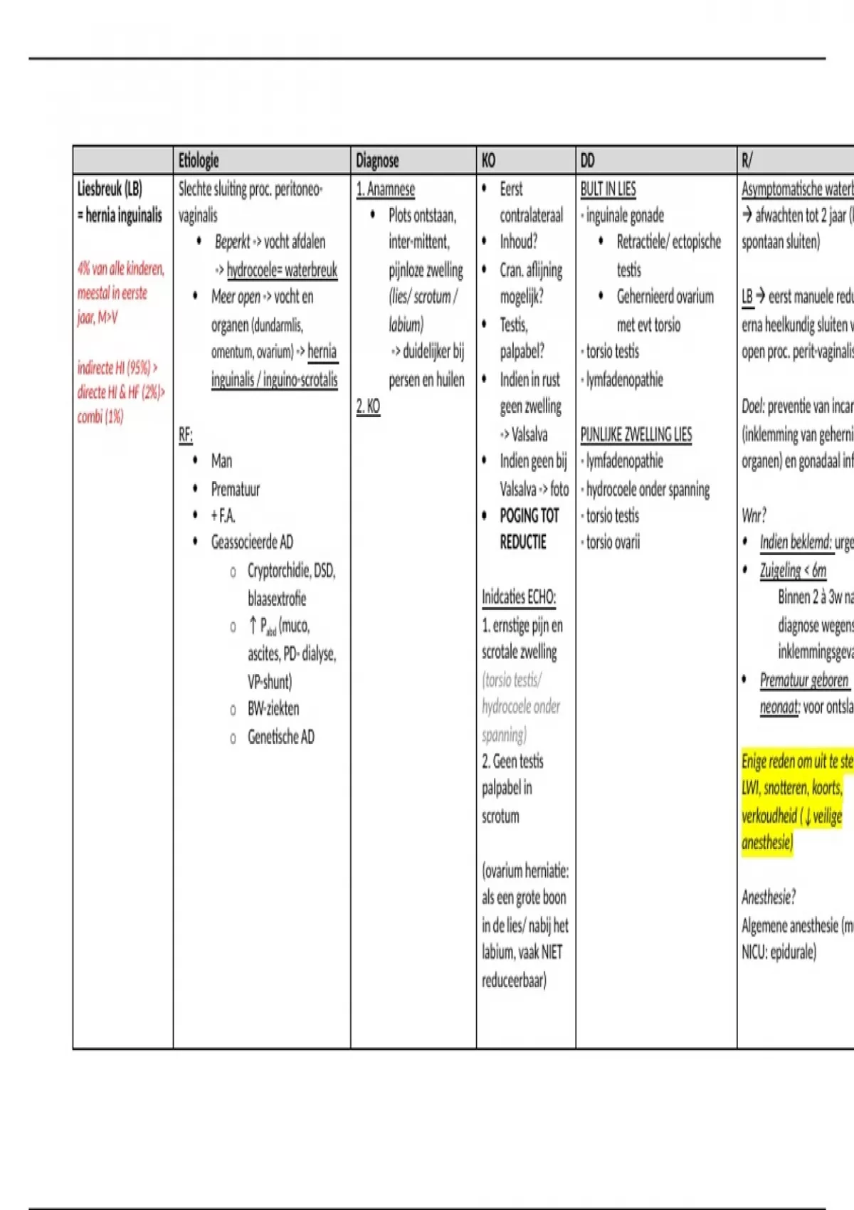 meestal in eerste  Meer open -> vocht en (lies/ scrotum / mogelijk?  Gehernieerd ovarium LB  eerst manuele redu