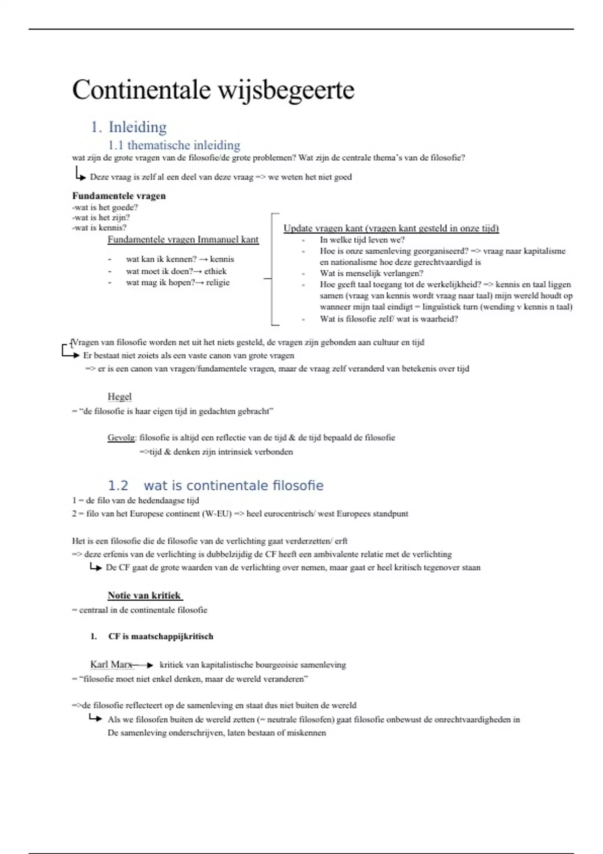 Dit is een samenvatting van continentale wijsbegeerte, maar het loopt wel maar tot Theodor W. Adorno, dus het is niet volledig