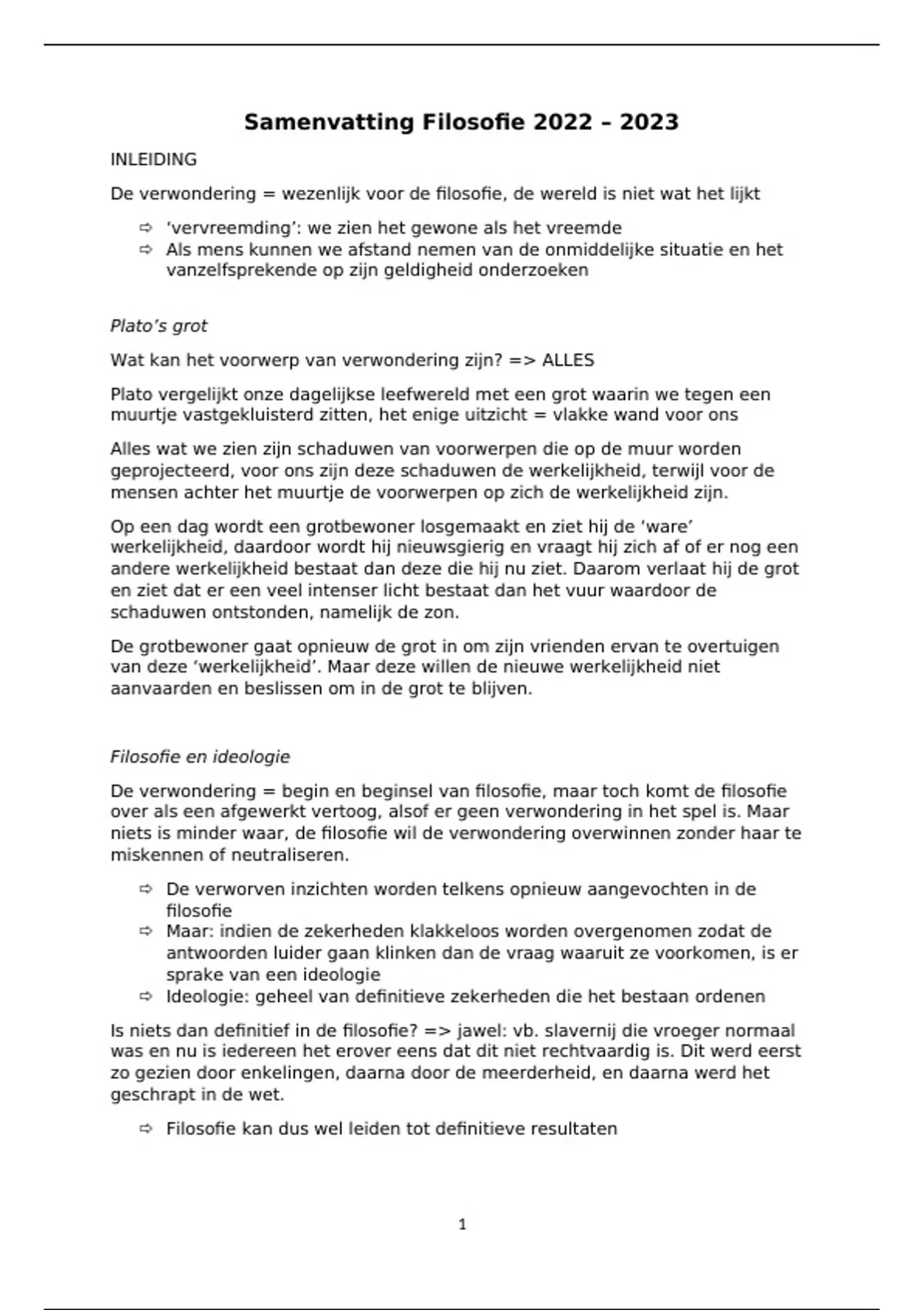 Samenvatting Wijsbegeerte: een historische inleiding GESLAAGD