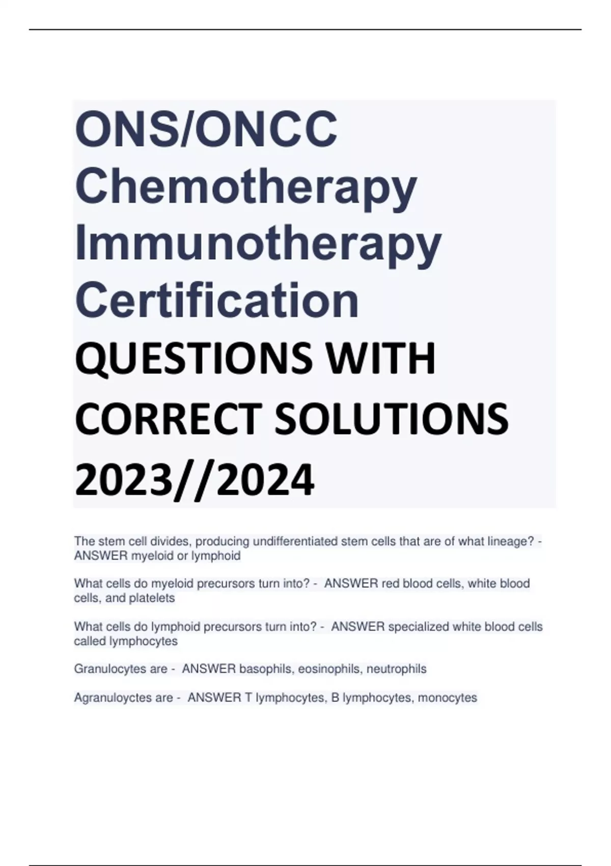 Exam (elaborations) ONS/ONCC Chemotherapy Immunotherapy Certification