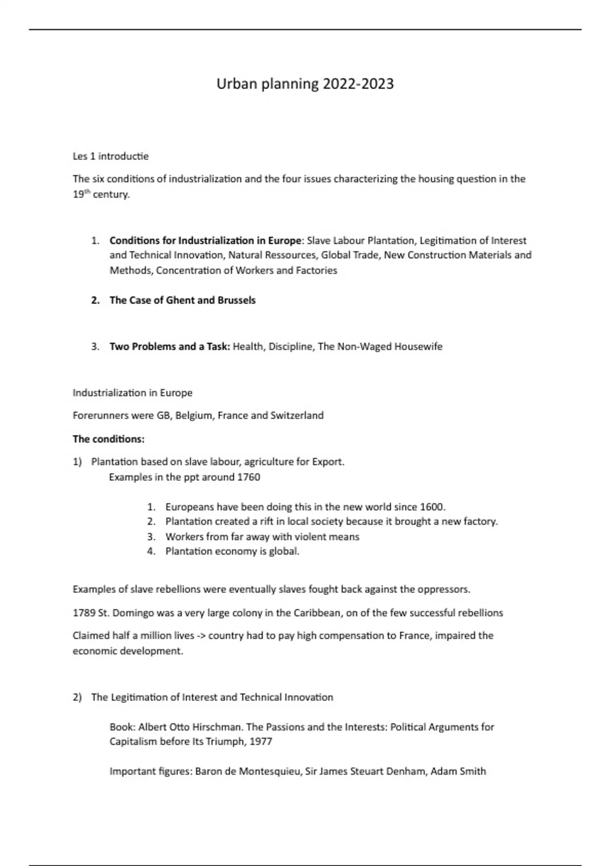 1. Conditions for Industrialization in Europe: Slave Labour Plantation, Legitimation of Interest