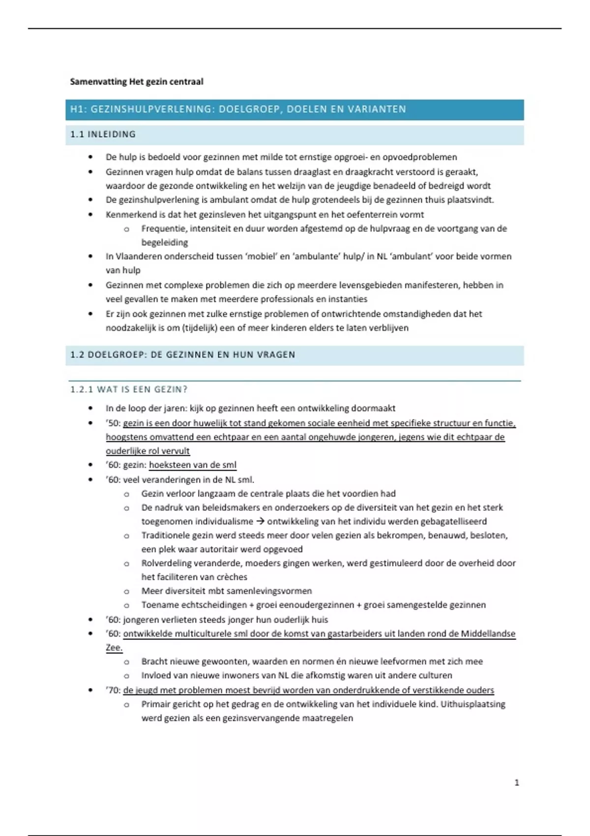H1: GEZINSHULPVERLENING: DOELGROEP, DOELEN EN VARIANTEN