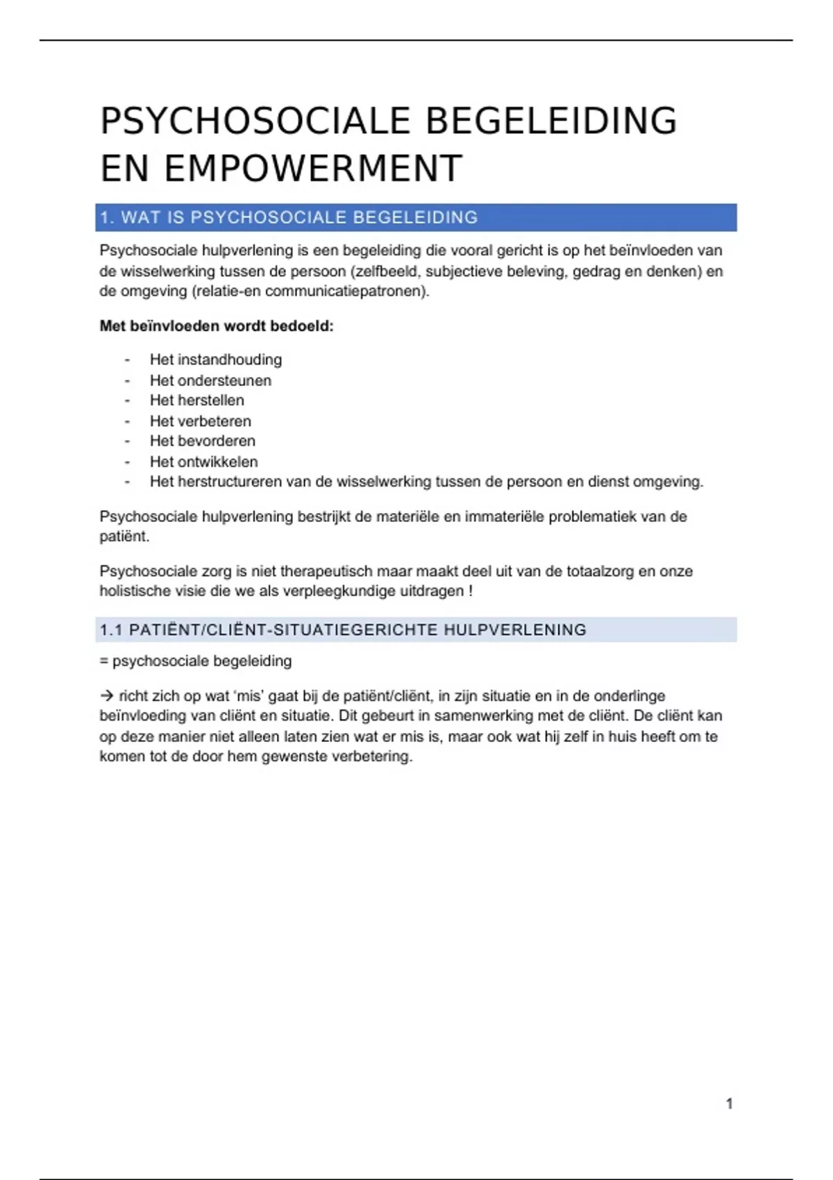 1. WAT IS PSYCHOSOCIALE BEGELEIDING