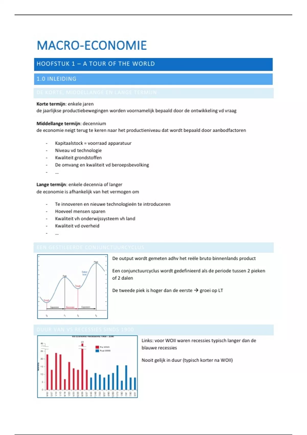 Samenvatting van alle hoofdstukken die gekend moeten zijn voor het vak Macro-economie!