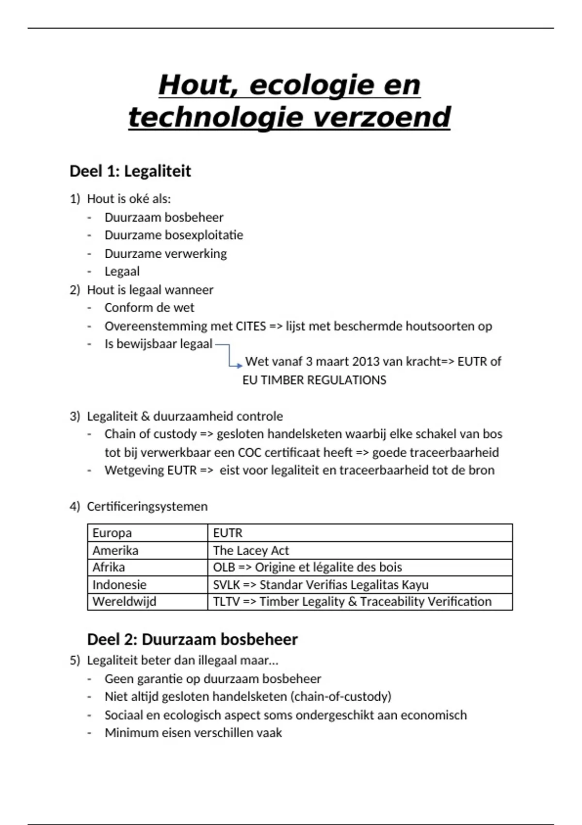 - Wetgeving EUTR => eist voor legaliteit en traceerbaarheid tot de bron