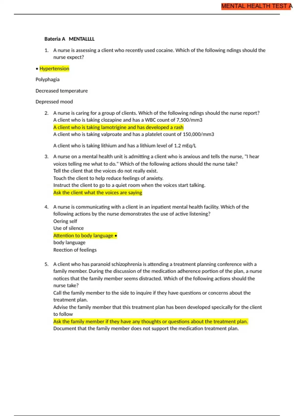 mental healt practice test A