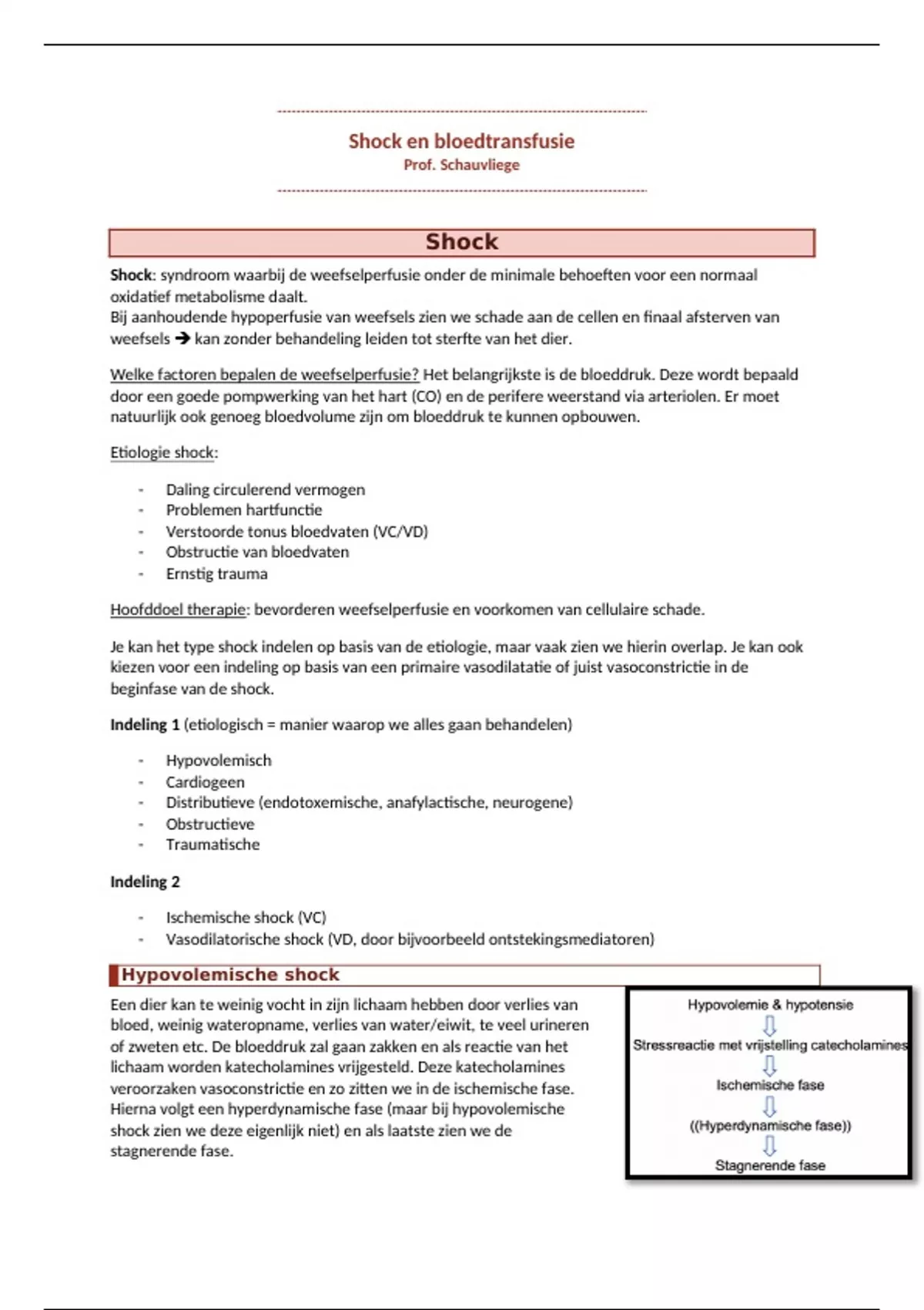 In deze samenvatting staat alles wat er in de les is behandeld door prof. Schauvliege over shock en bloed(transfusie). Ook in bundel verkrijgbaar met de rest van de onderdelen van dit vak.