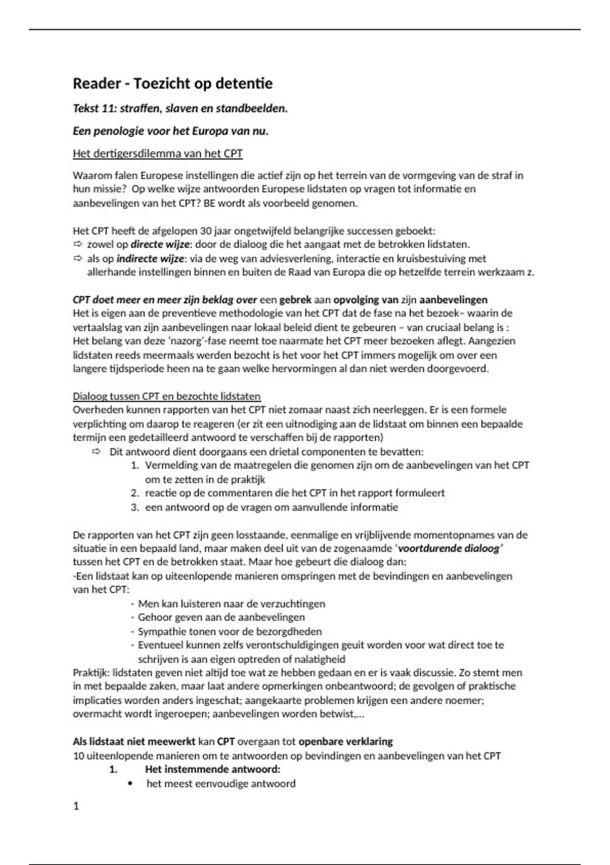 dit is een samenvatting van de reader over het gedeelte toezicht op detentie.