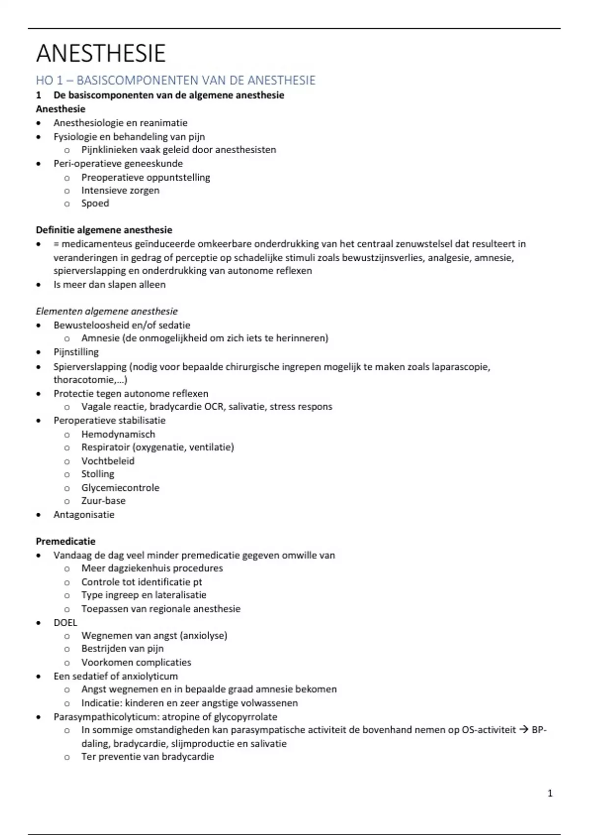 HO 1 – BASISCOMPONENTEN VAN DE ANESTHESIE
