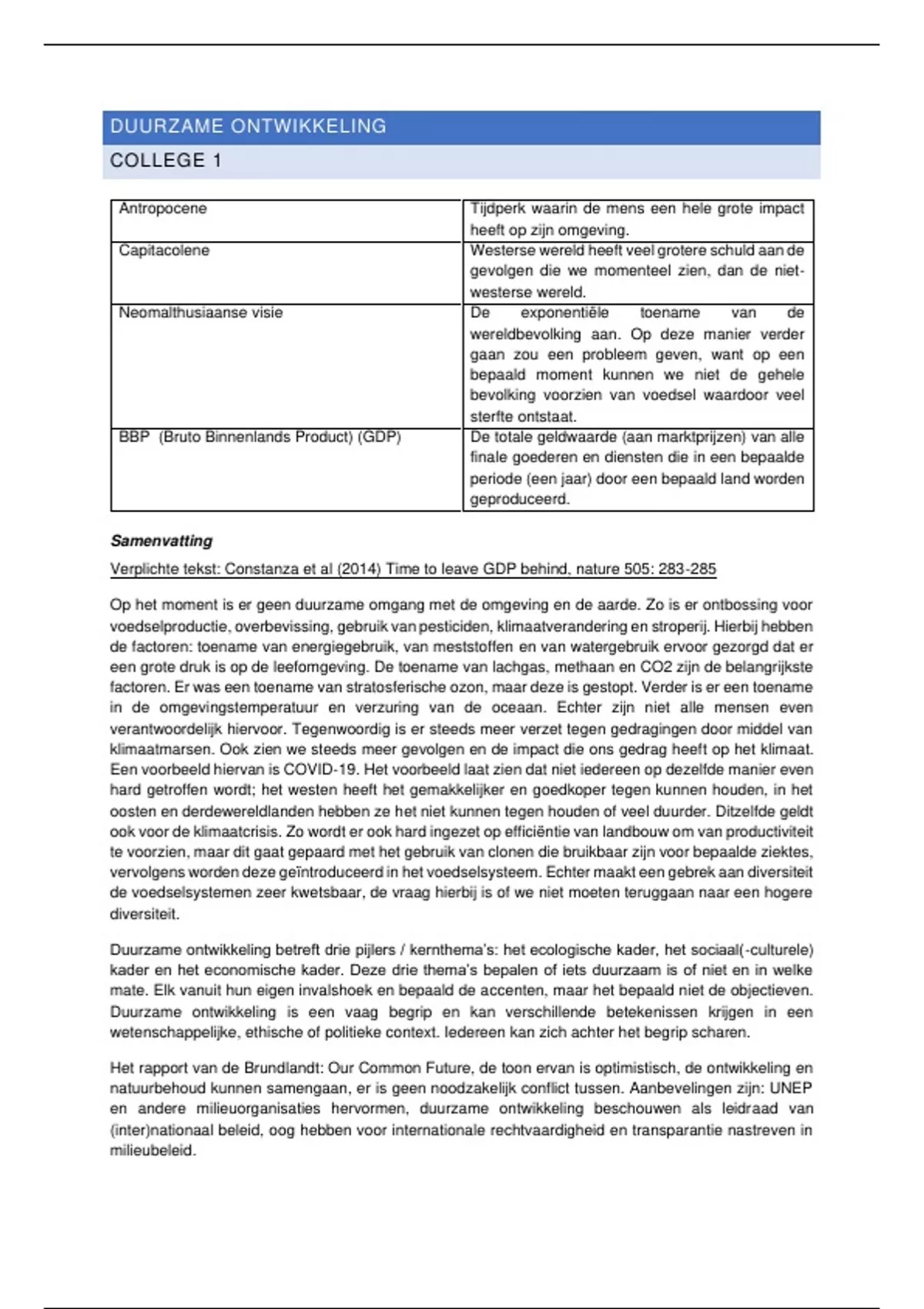 Verplichte tekst: Constanza et al (2014) Time to leave GDP behind, nature 505: 283-285