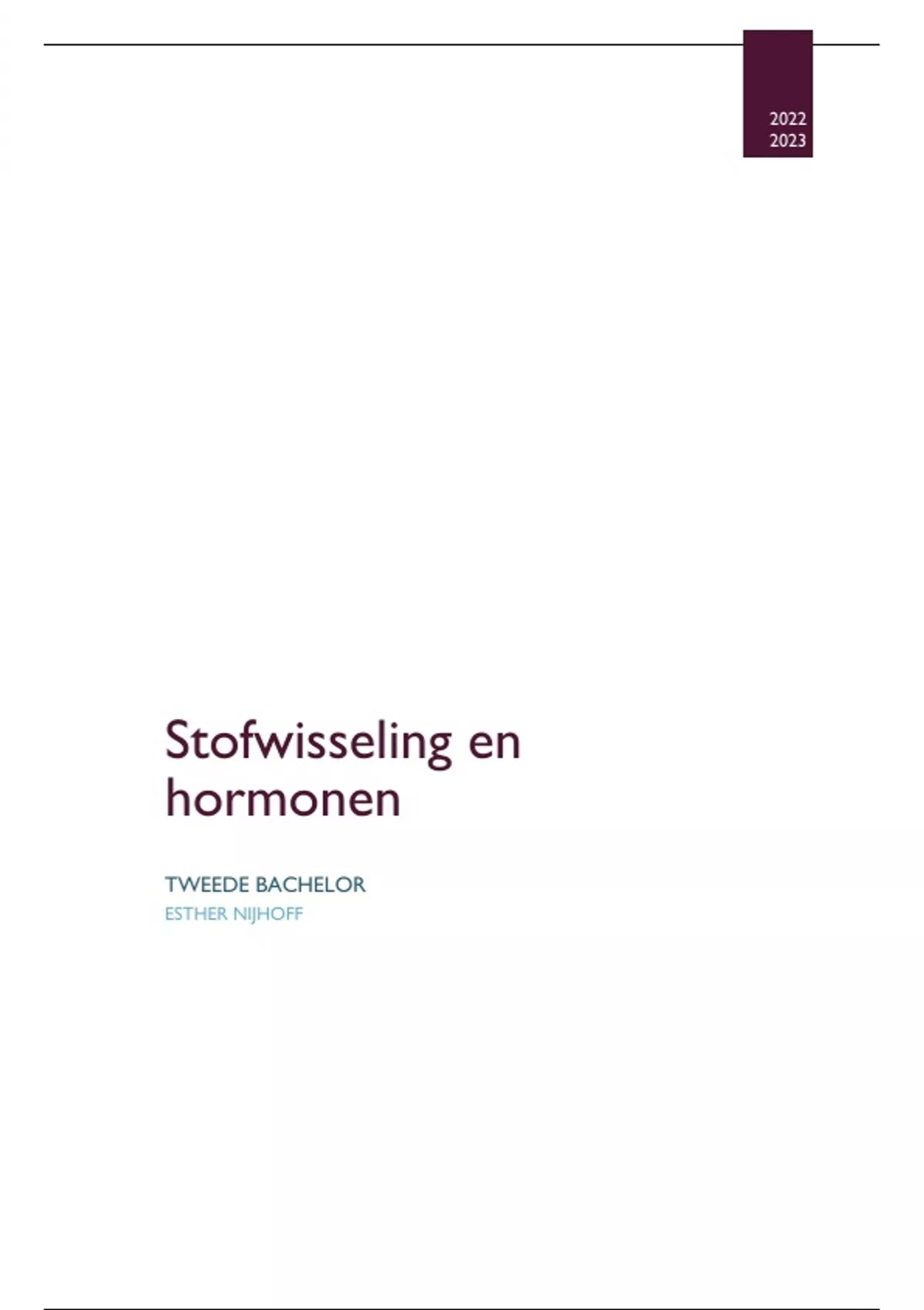Complete samenvatting van alle lessen van het vak stofwisseling en hormonen uit tweede bachelor.