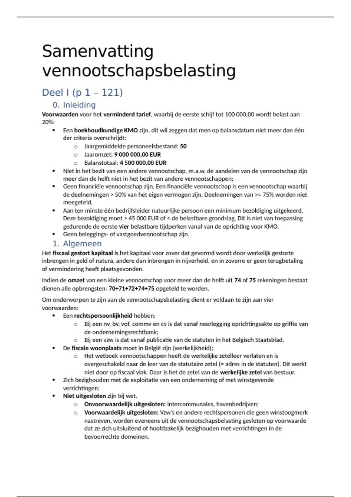 Dit is een samenvatting voor het vak vennootschapsbelasting dat wordt gegeven door mevrouw Erika Raes.