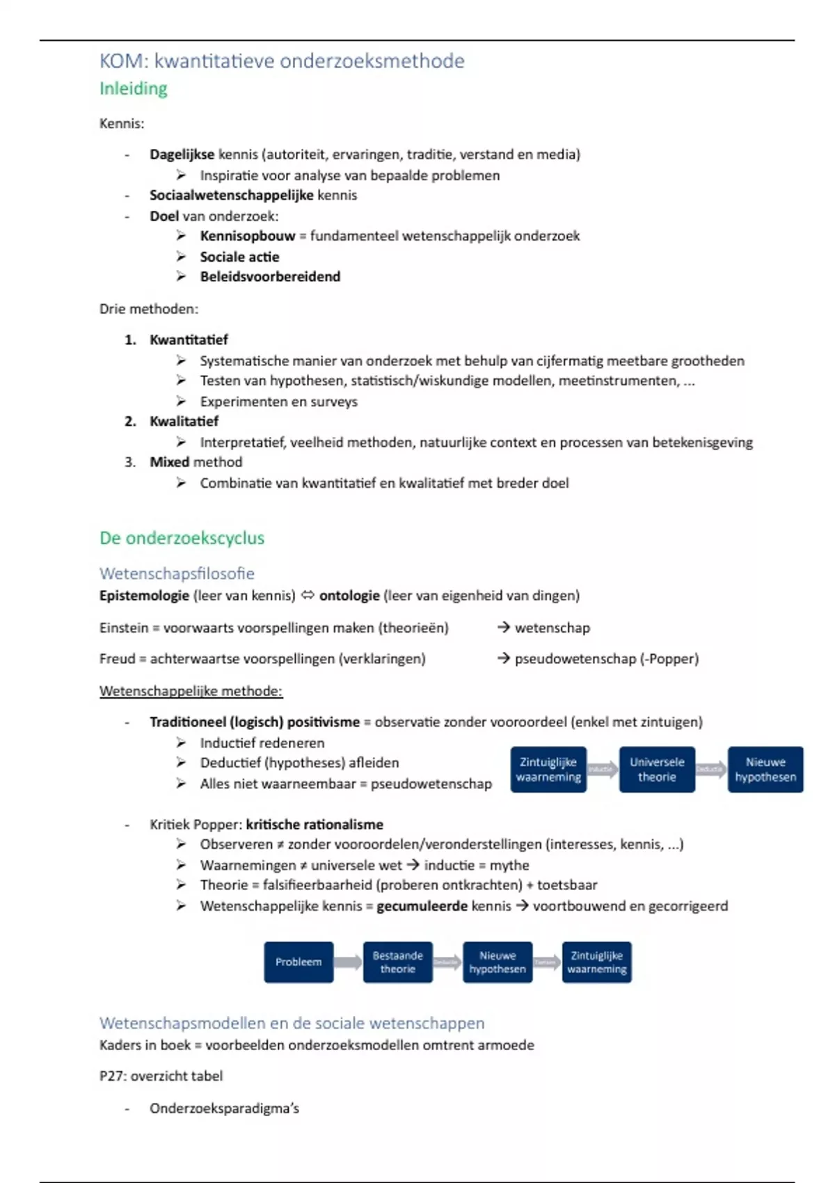 ➢ Theorie = falsifieerbaarheid (proberen ontkrachten) + toetsbaar