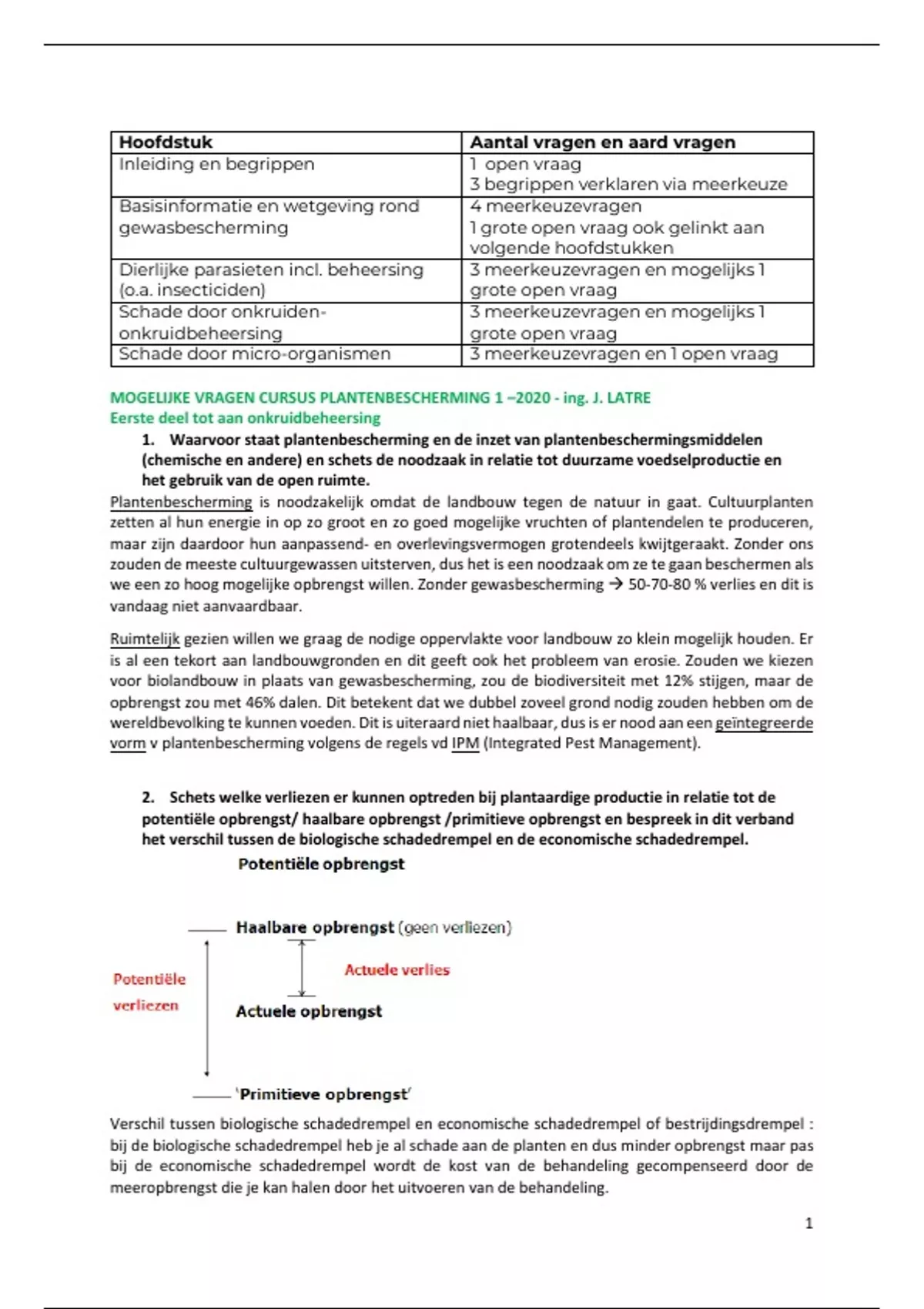 MOGELIJKE VRAGEN CURSUS PLANTENBESCHERMING 1 –2020 - ing. J. LATRE
