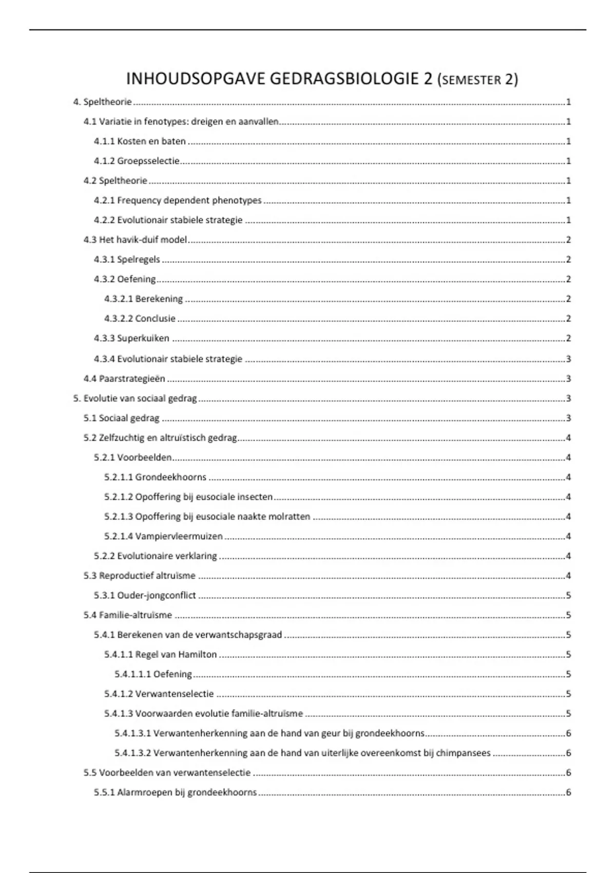 INHOUDSOPGAVE GEDRAGSBIOLOGIE 2 (SEMESTER 2)