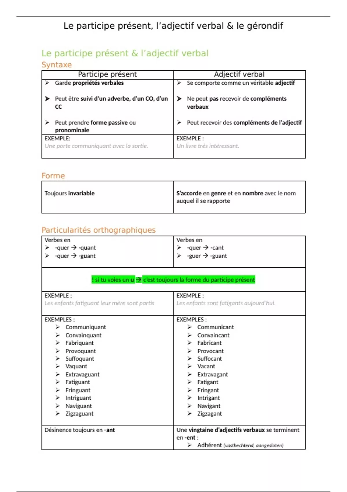 Le participe présent, l’adjectif verbal & le gérondif
