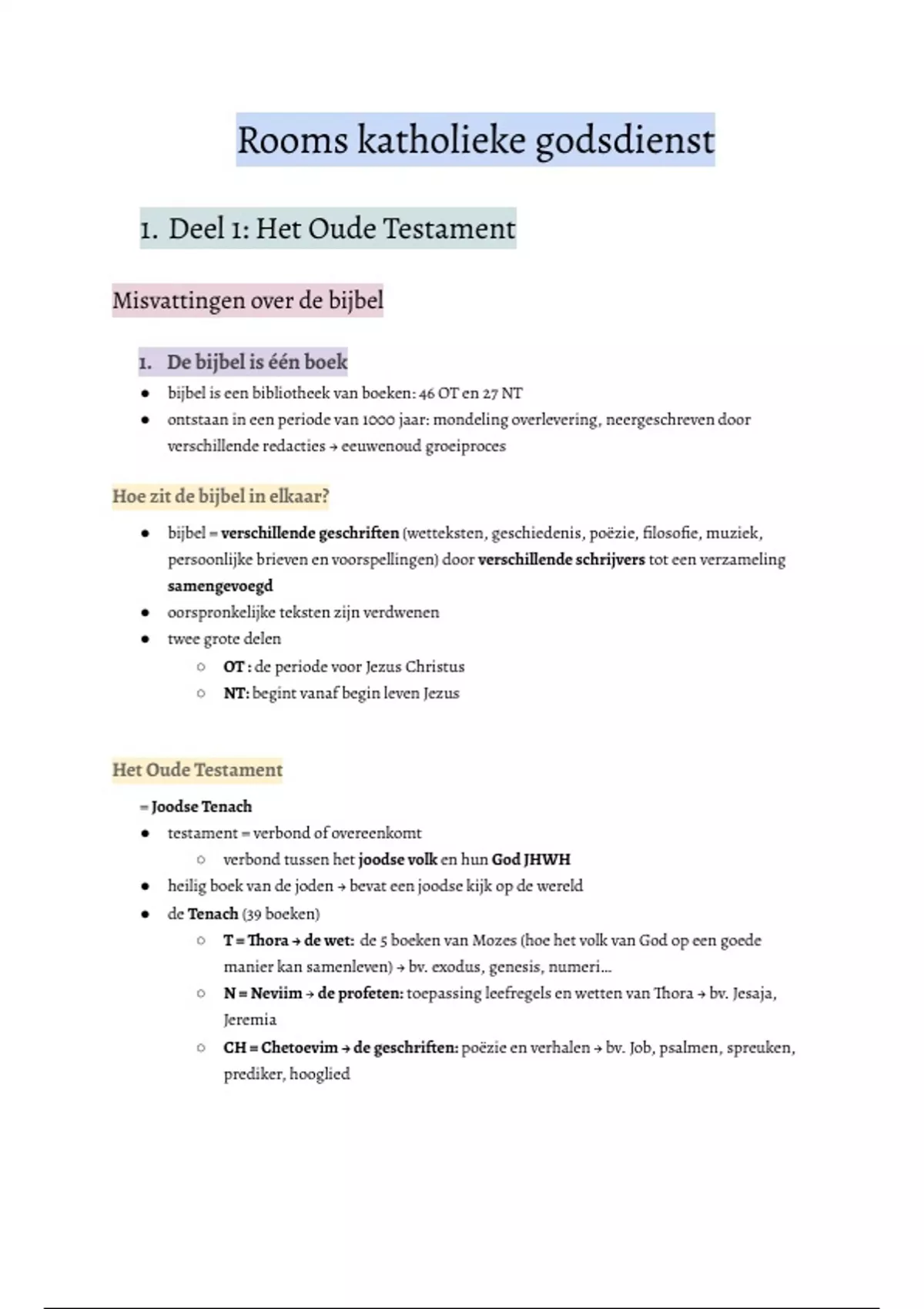 ○ T = Thora → de wet: de 5 boeken van Mozes (hoe het volk van God op een goede