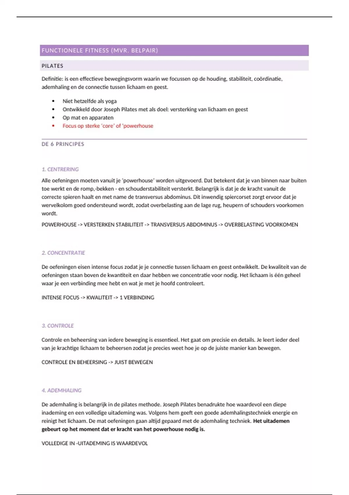 Samenvatting van de lessen van Marianne Belpair. Vak functionele fitness