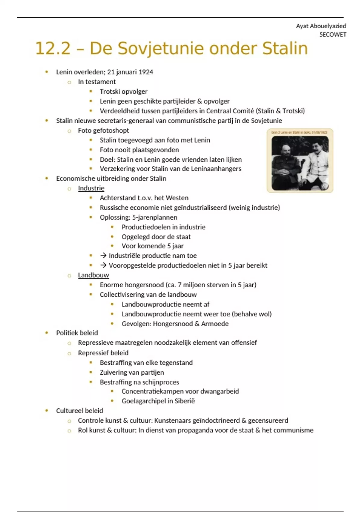 Doel: Stalin en Lenin goede vrienden laten lijken