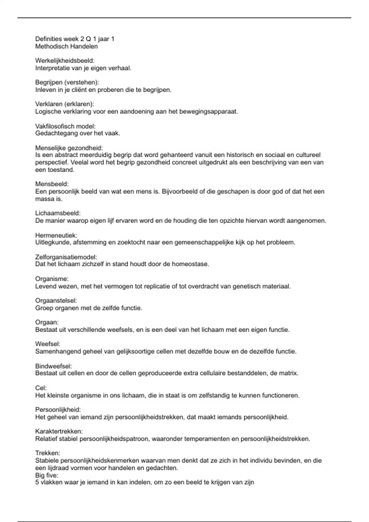 Definities week 2 Q 1 jaar 1