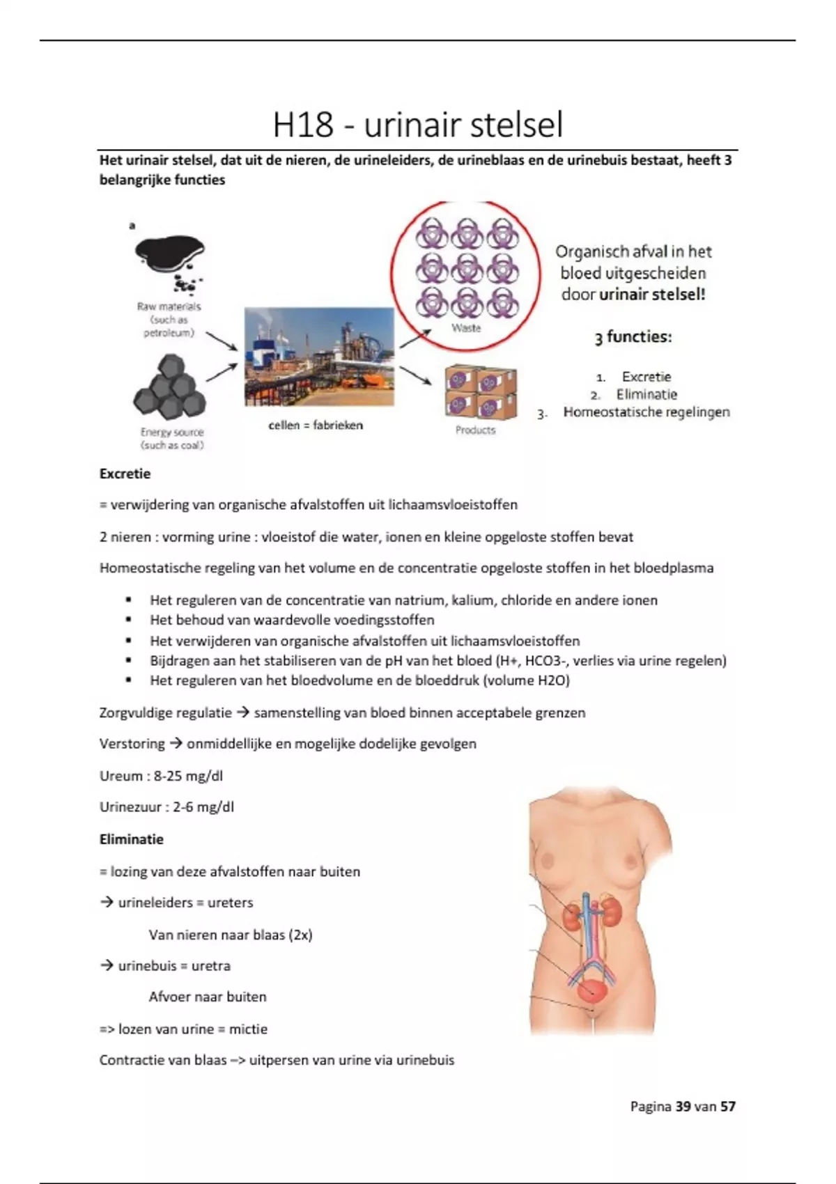 ▪ Bijdragen aan het stabiliseren van de pH van het bloed (H+, HCO3-, verlies via urine regelen)