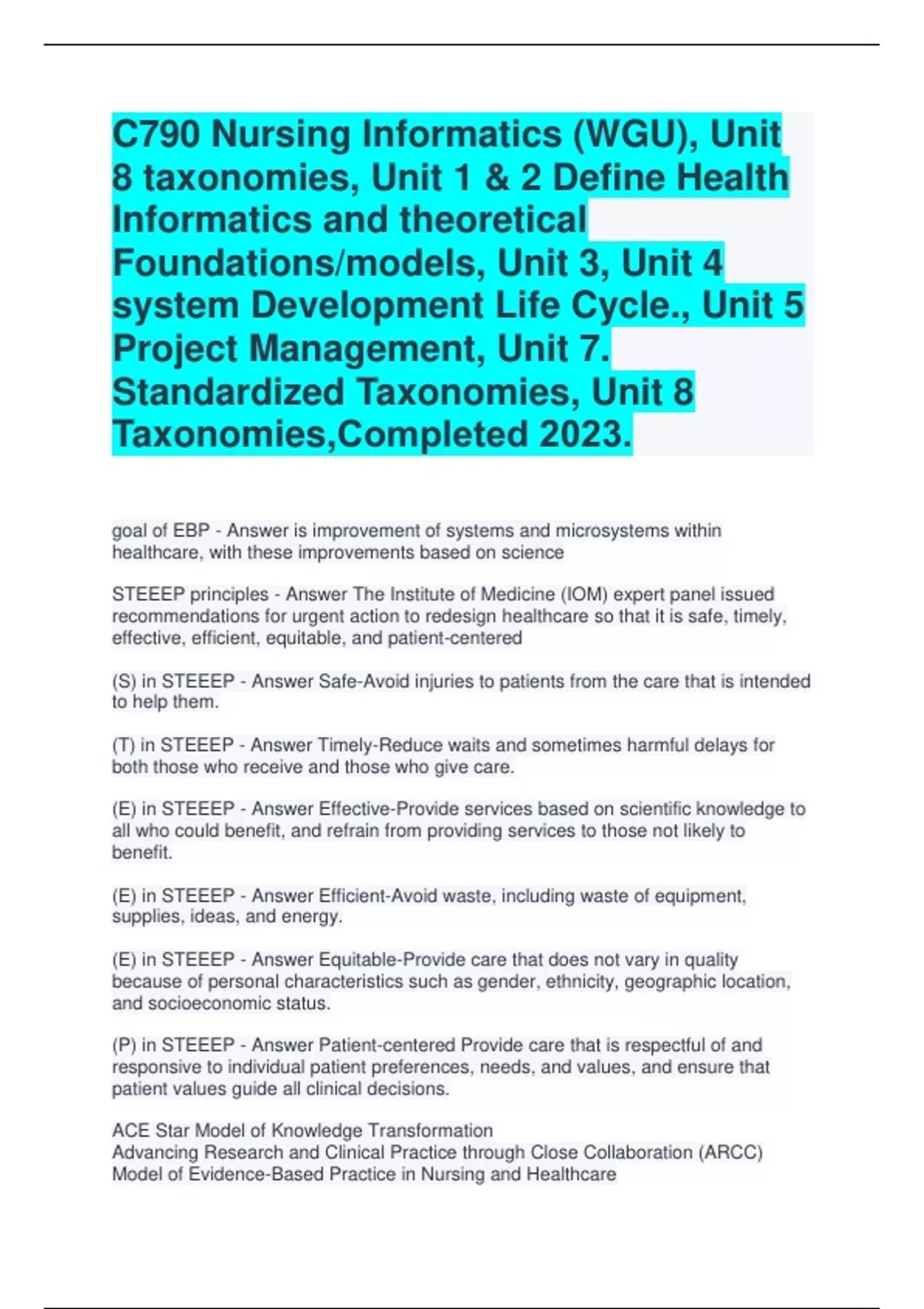 C790 Nursing Informatics (WGU) ALL UNITS Completed 2023