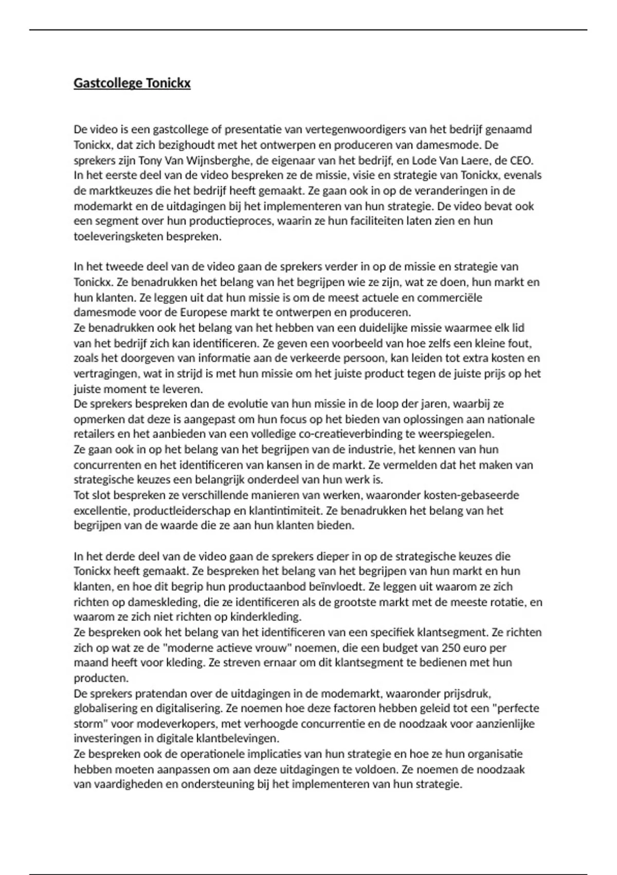 In het eerste deel van de video bespreken ze de missie, visie en strategie van Tonickx, evenals