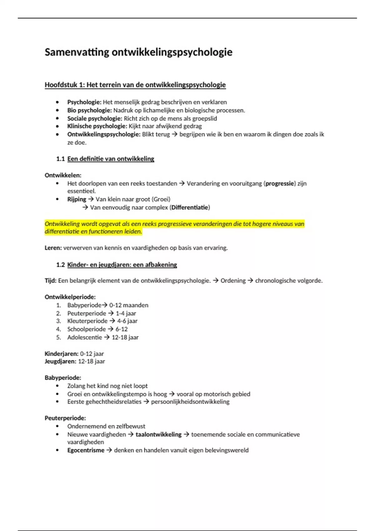 Complete samenvatting voor het tentamen van ontwikkelingspsychologie. (PABO-jaar 1)