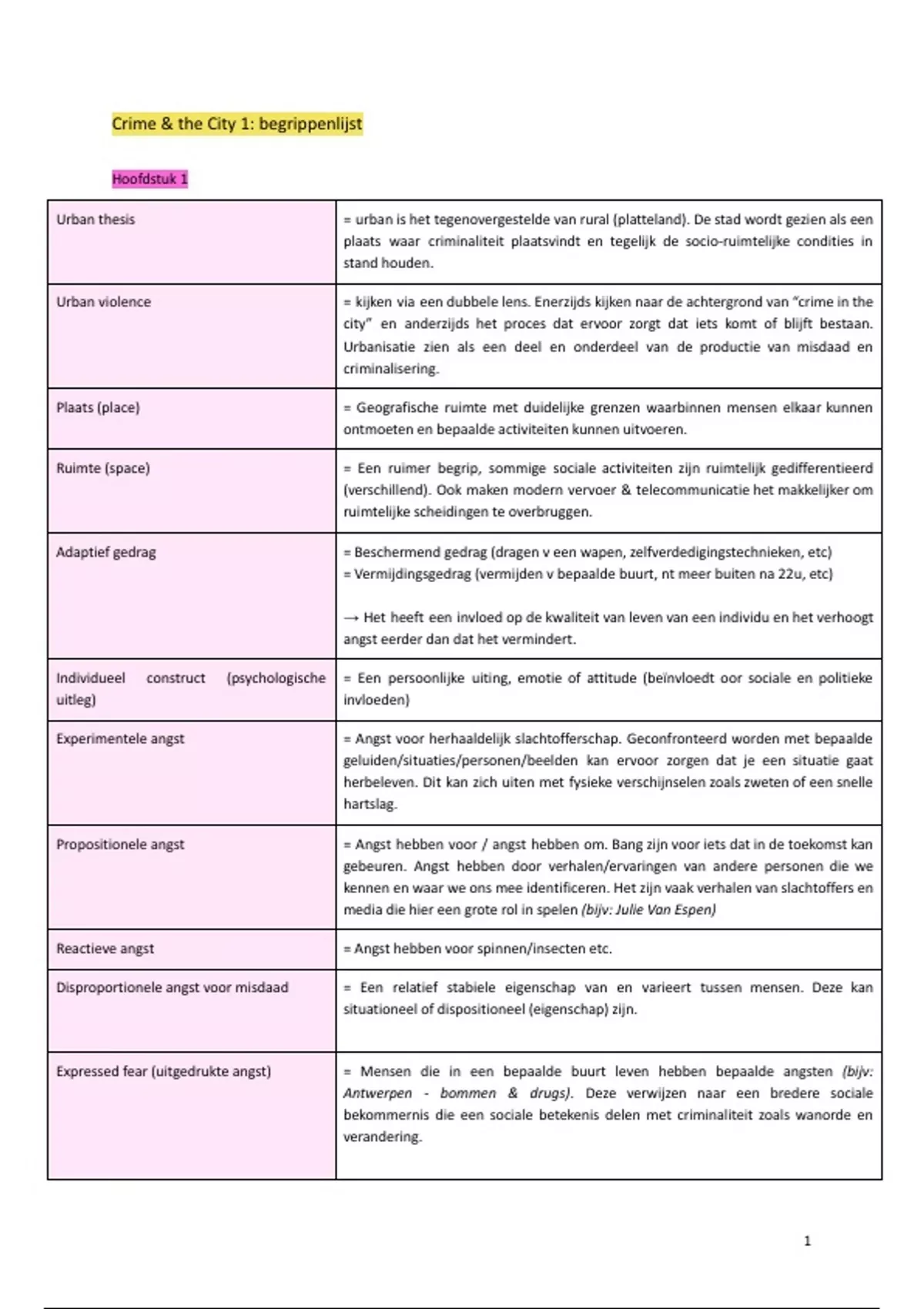 Crime & the City 1: begrippenlijst