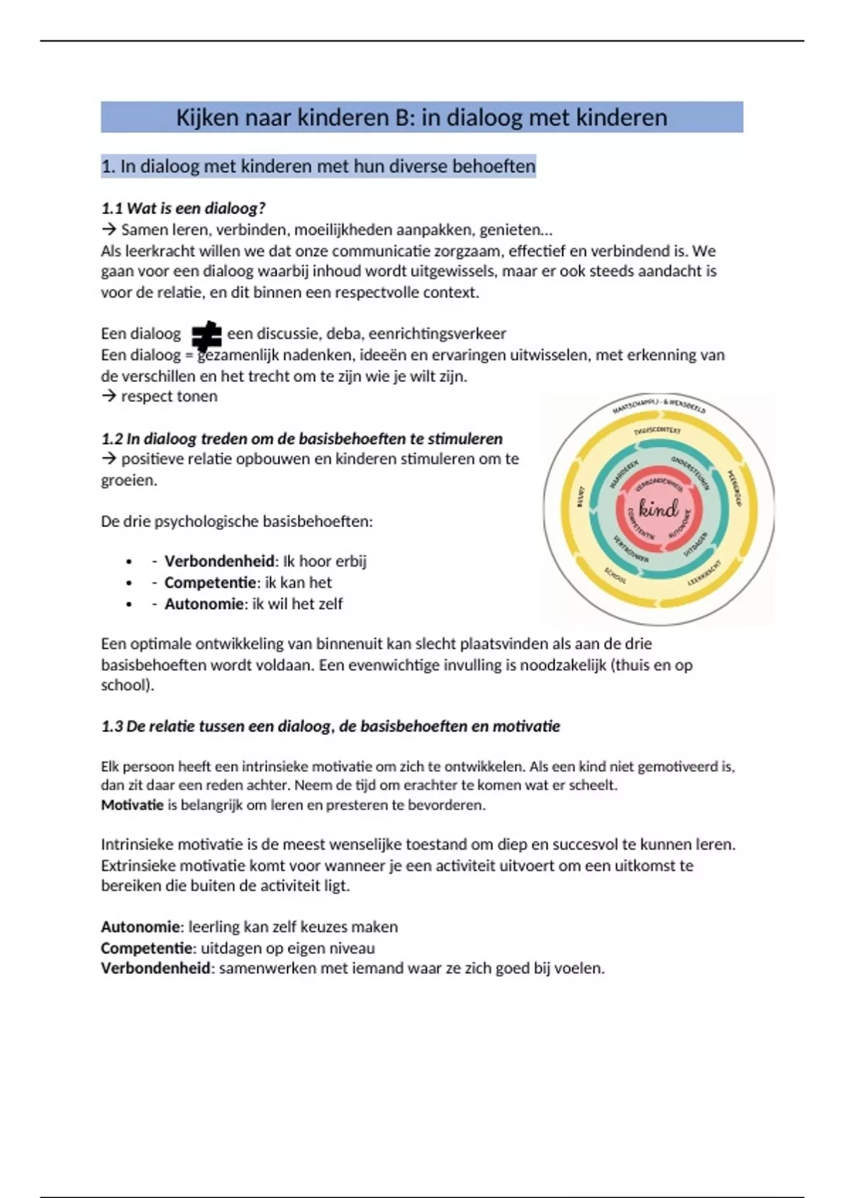 1.3 De relatie tussen een dialoog, de basisbehoeften en motivatie