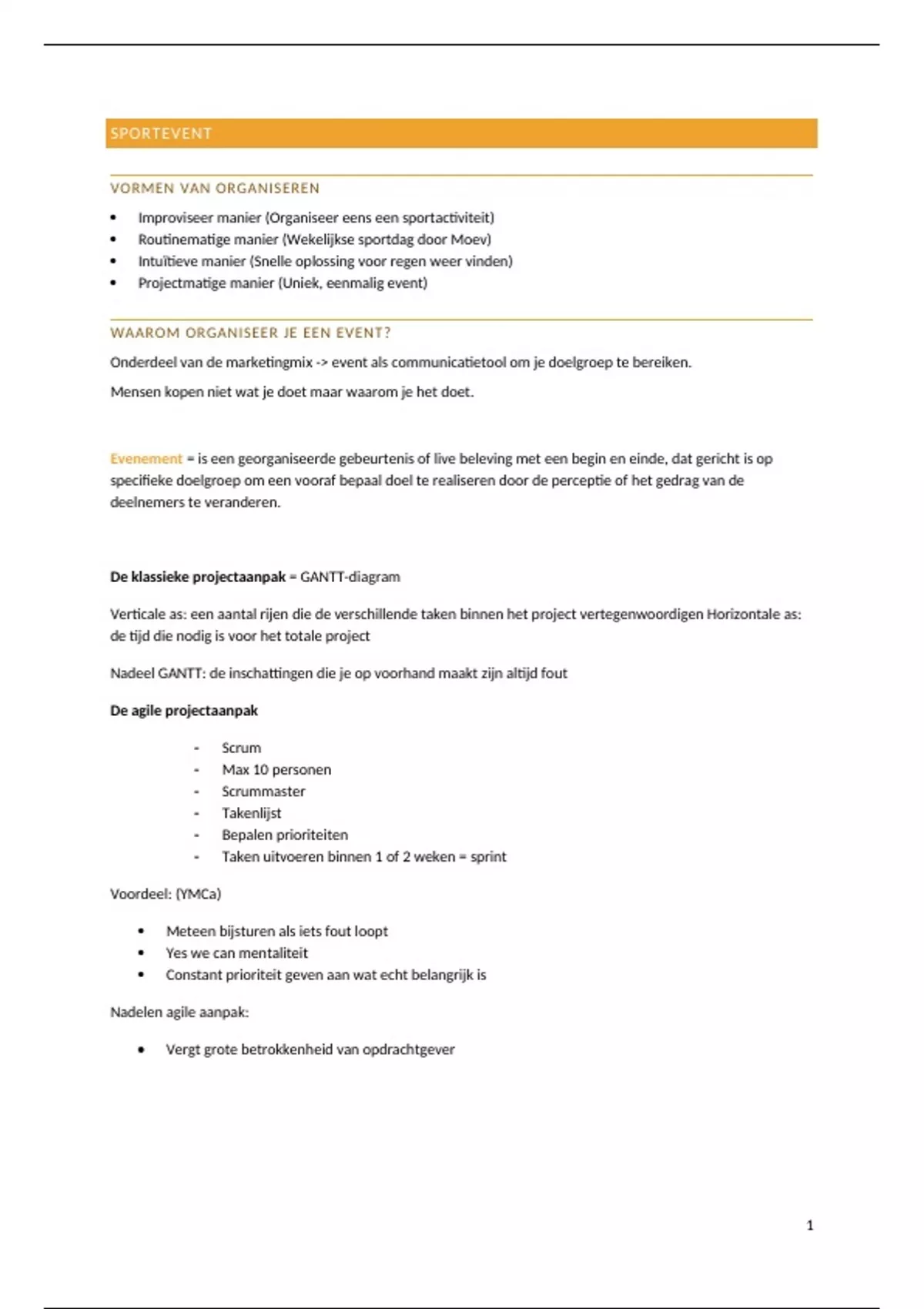 - Taken uitvoeren binnen 1 of 2 weken = sprint