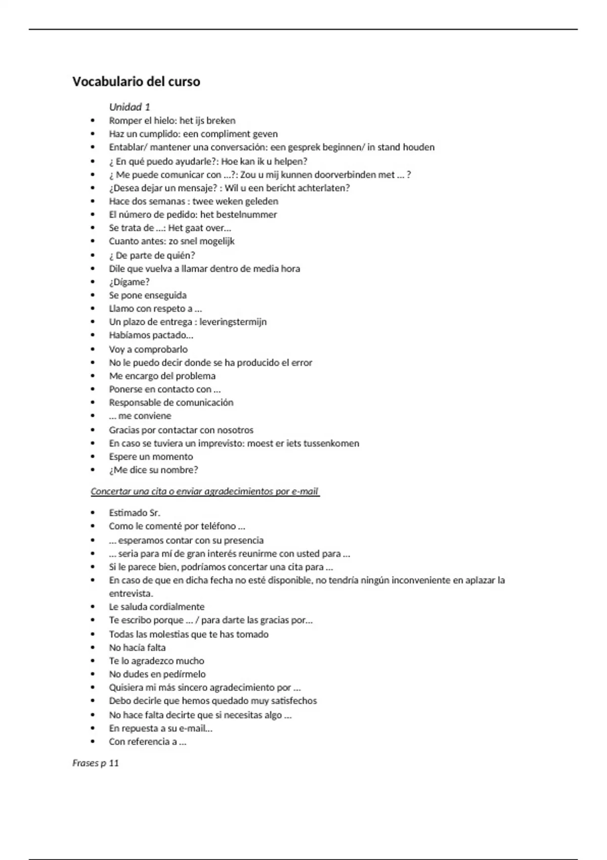 Sumario Spaans: Professionele communicatie 2