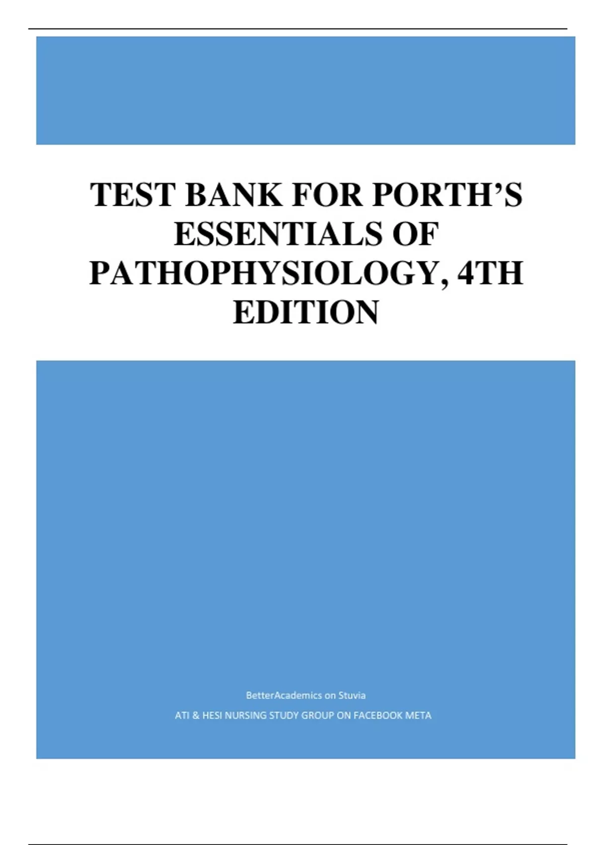 TEST BANK FOR PORTH’S ESSENTIALS OF PATHOPHYSIOLOGY, 4TH EDITION