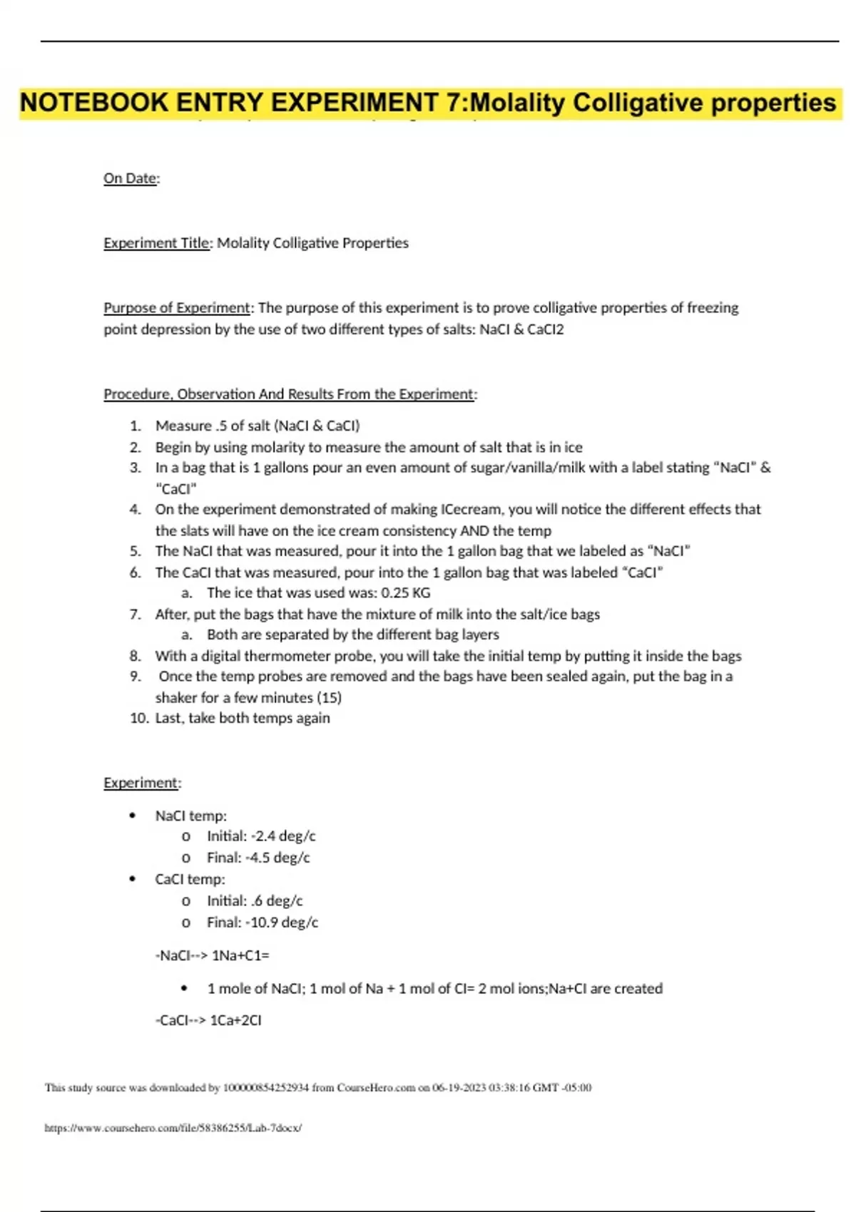 chem 103 notebook entry for lab 7 molality collig