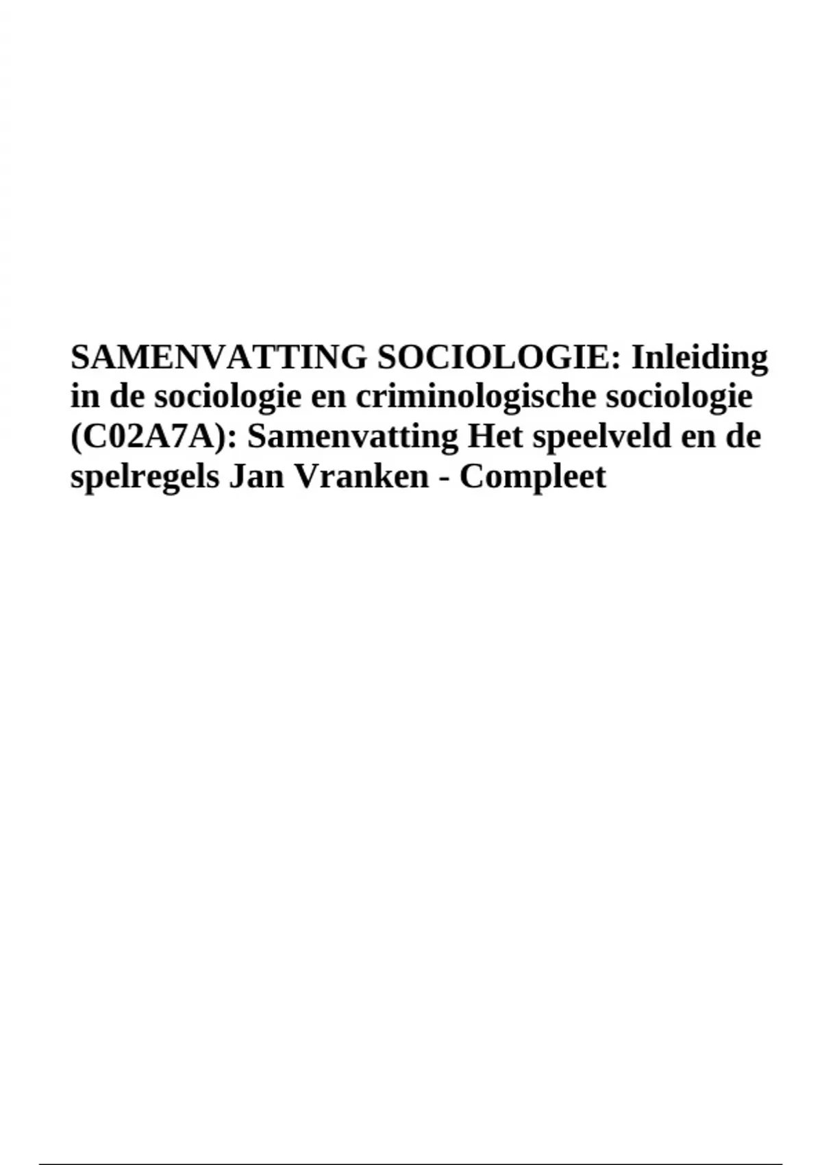 SAMENVATTING SOCIOLOGIE