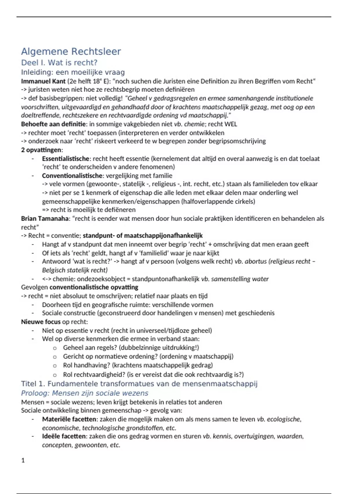 Samenvatting algemene rechtsleer 1e bach rechten ugent