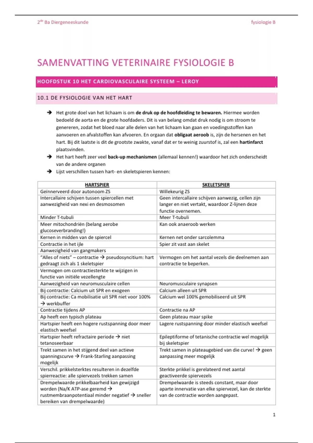 SAMENVATTING VETERINAIRE FYSIOLOGIE B