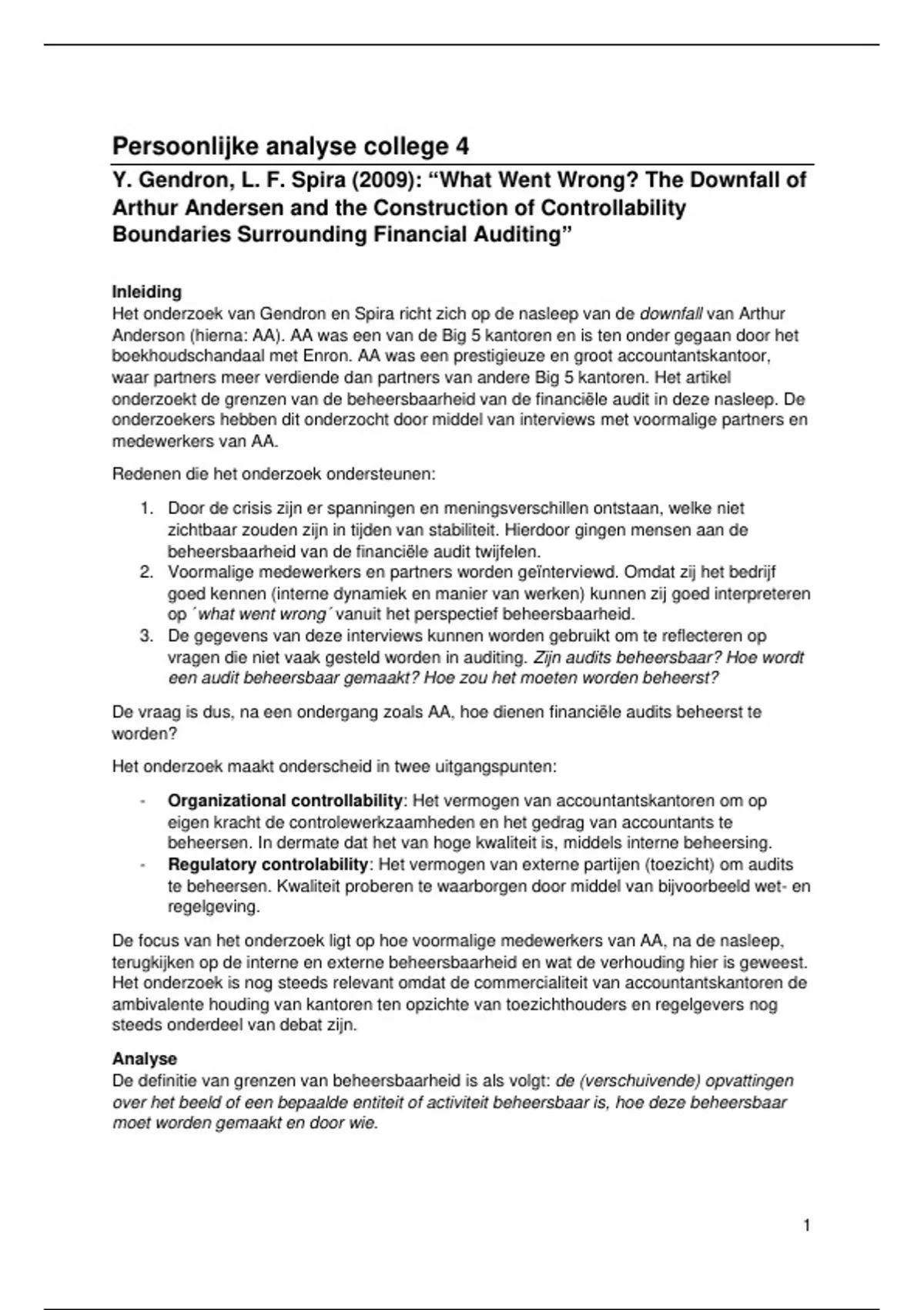 Anderson (hierna: AA). AA was een van de Big 5 kantoren en is ten onder gegaan door het