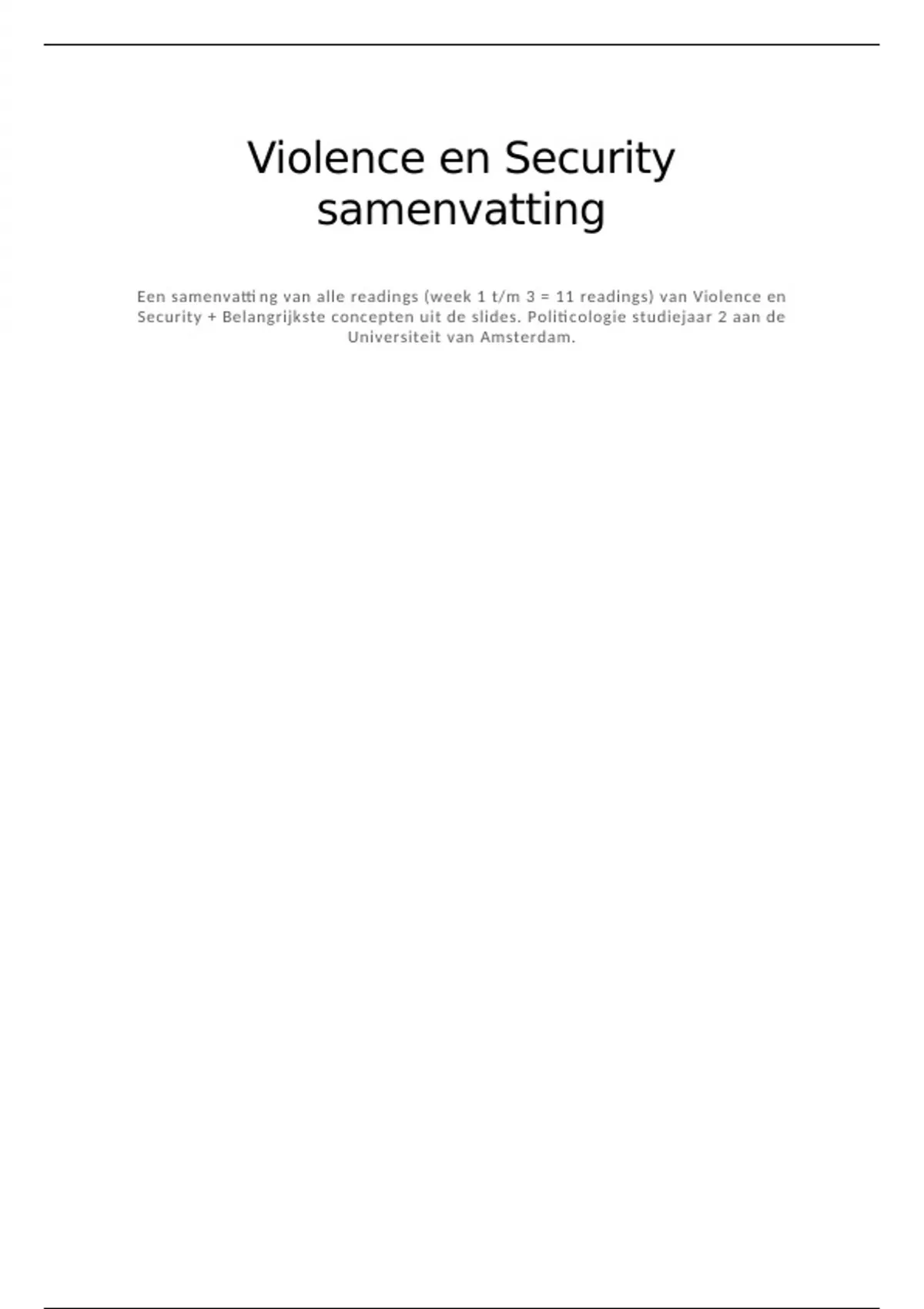 Een samenvatti ng van alle readings (week 1 t/m 3 = 11 readings) van Violence en