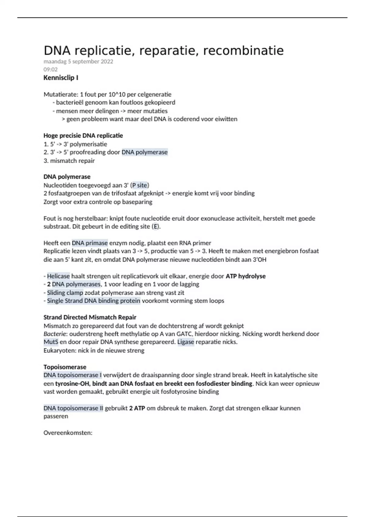 DNA replicatie, reparatie, recombinatie