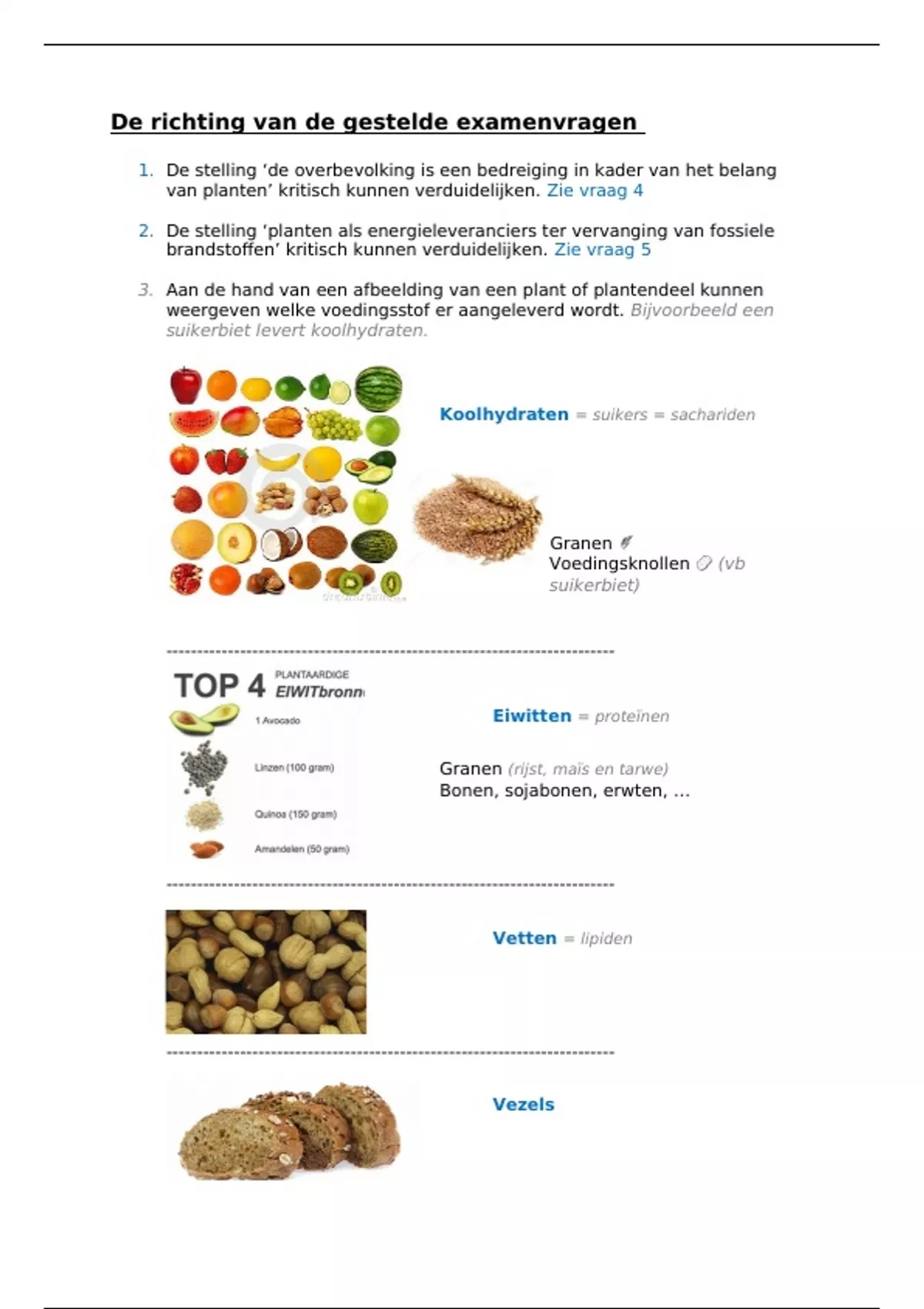 Plantkunde: L1 - Belang van planten - Ingevulde 'Richting van de gestelde examenvragen'